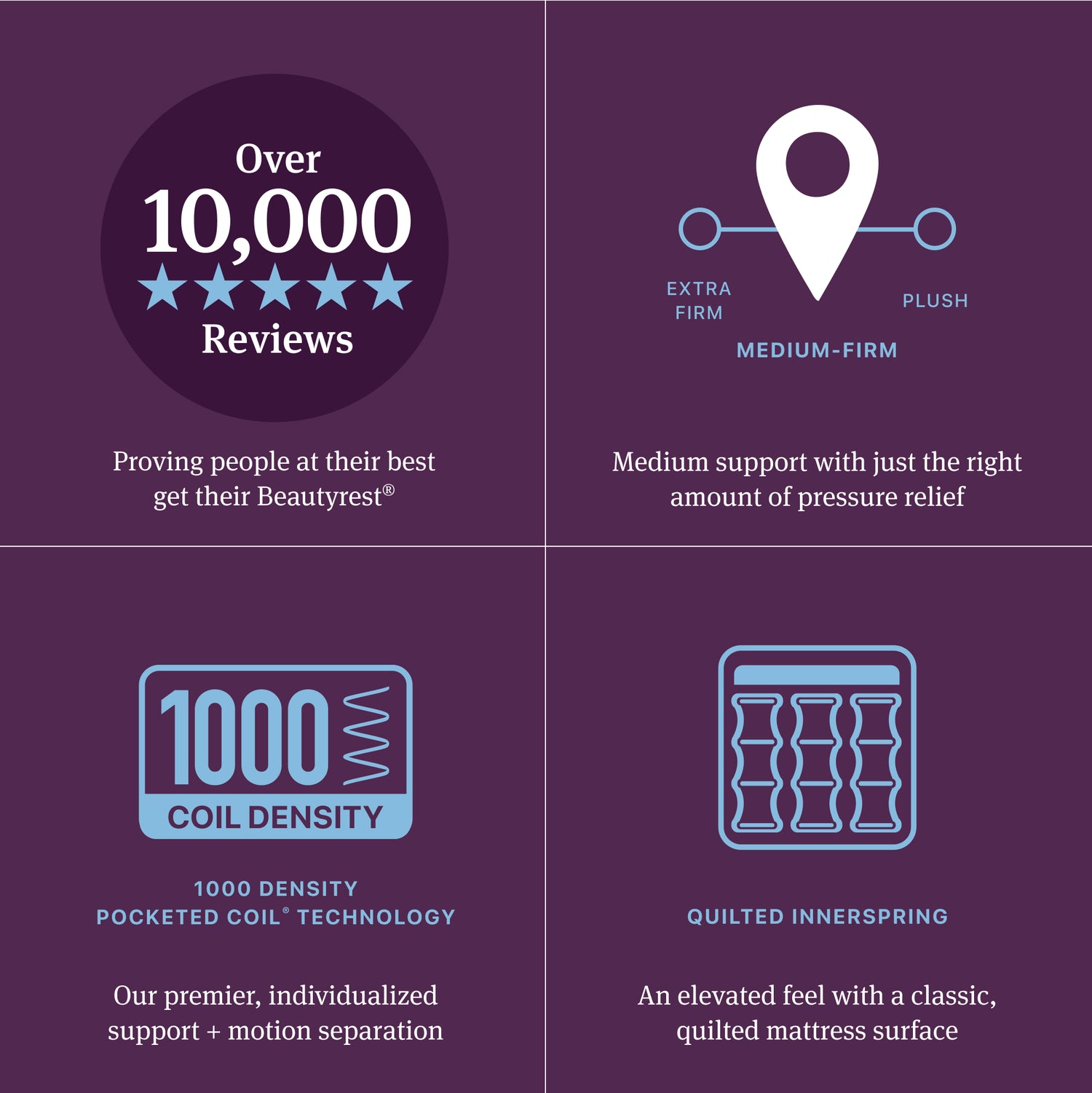 - Our 1000-density Pocketed Coil® Technology and higher density foams provide premier individualized support + motion separation
