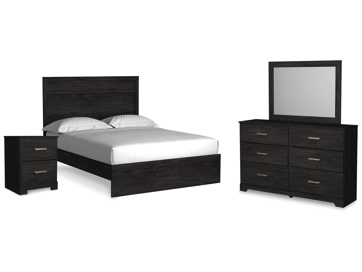 - Item Name: Belachime Charcoal Queen Panel Bed, Dresser, Mirror, and Nightstand