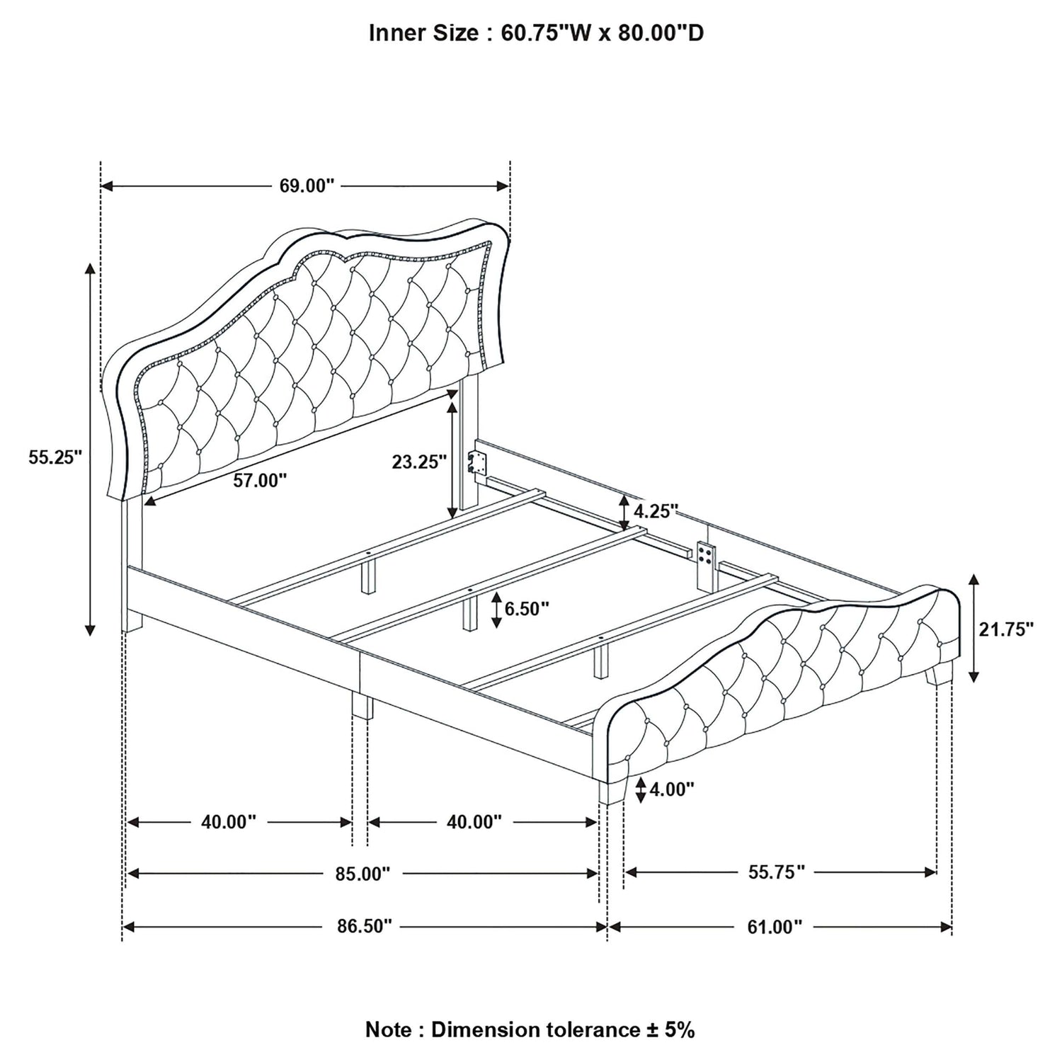 Enhanced with self-welt trim, this bell style headboard adds an ornate and traditional touch to your sleeping space. Button tufting adorns this piece with classic button accents. Intricately applied nailhead trim further enhances the style of this headboard. Upholstered in luxurious grey felt, this is a comfortable and stylish addition to your space. Complete the look of your bedroom with a traditional headboard with modern elements.
