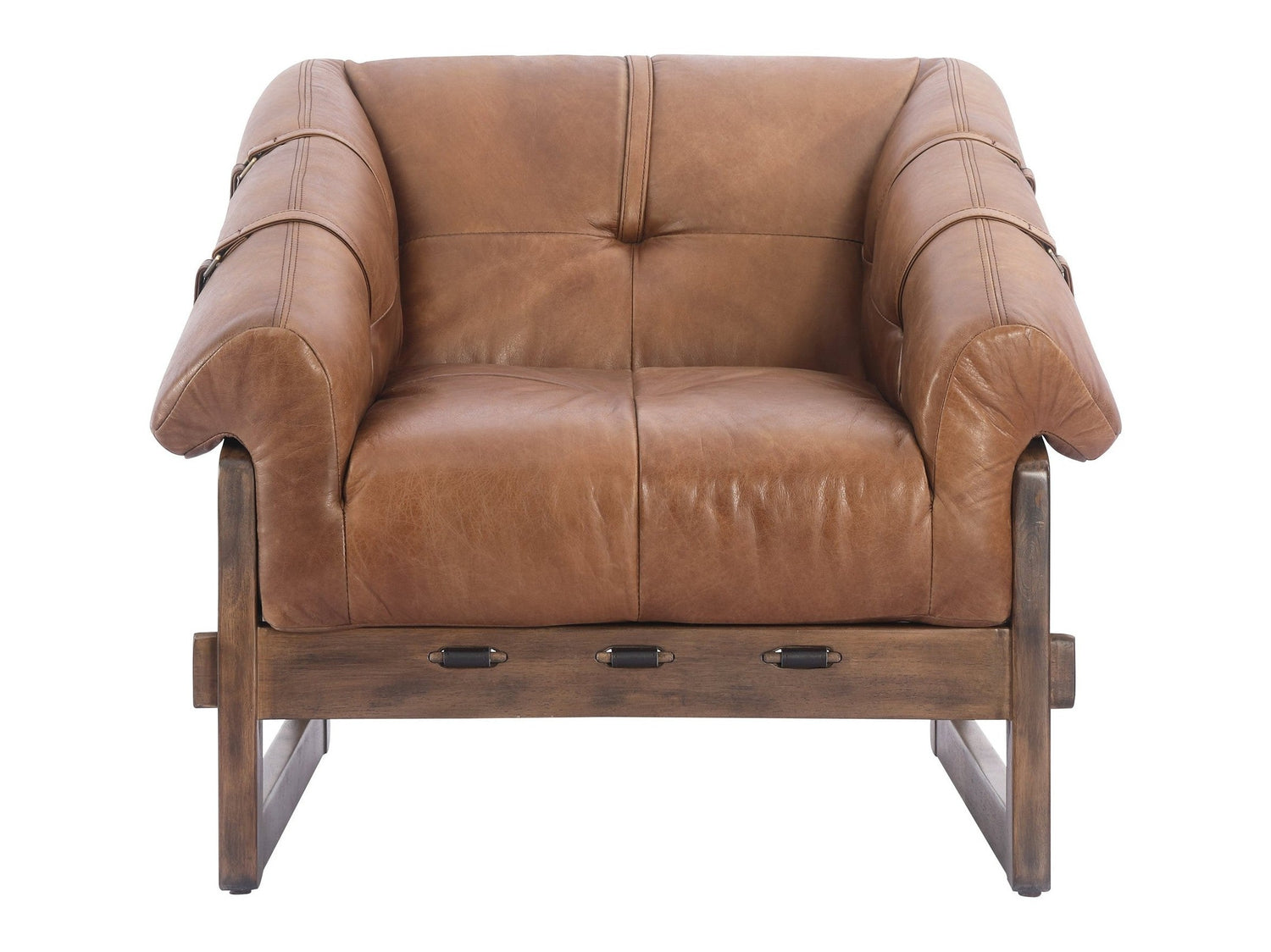 - 100% top-grain leather- Solid rubberwood frame