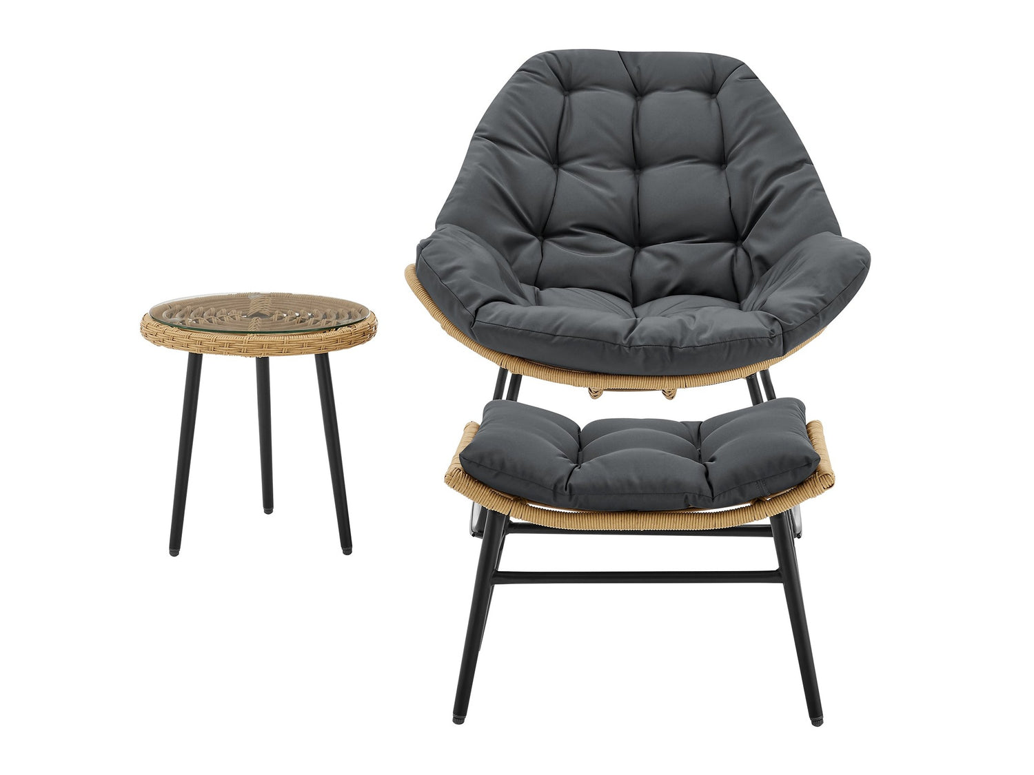 - Modern 3-Piece Outdoor Conversation Patio Set with 1 Chair, 1 Foot Ottoman, and 1 End Table.