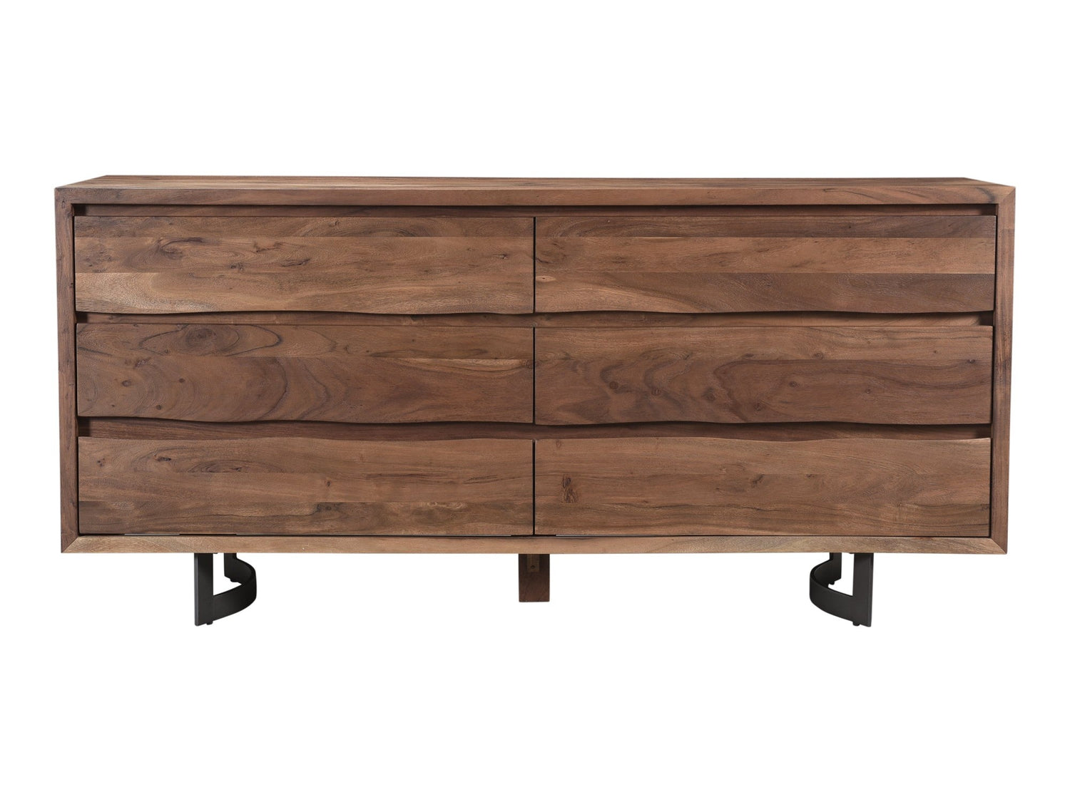 - Solid Acacia wood with a natural, water-based finish featuring a live edge- 6 drawers with slide mount ball bearing glides
