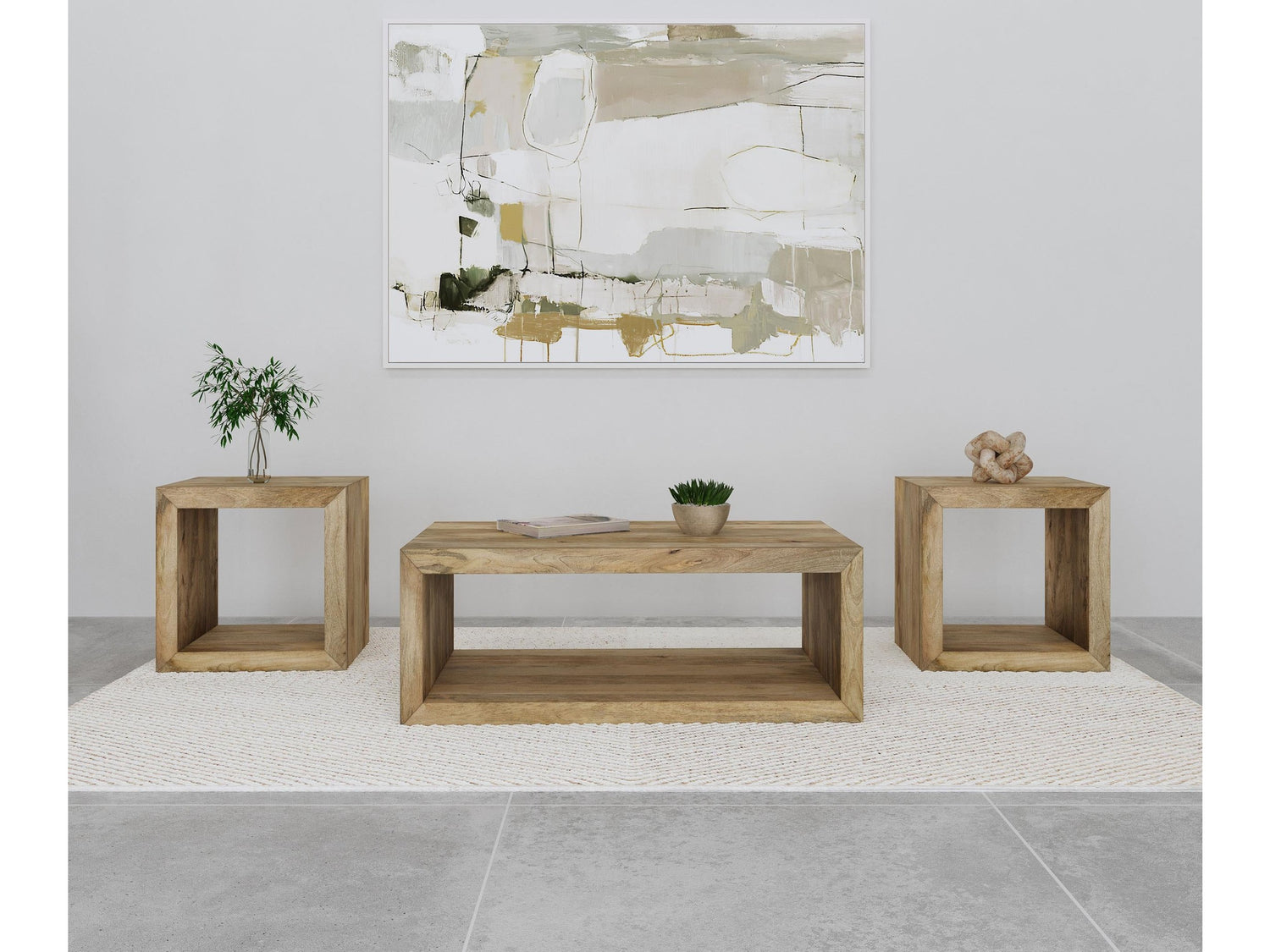 - Item Name: Benton Natural 3-piece Solid Mango Coffee and End Table Set