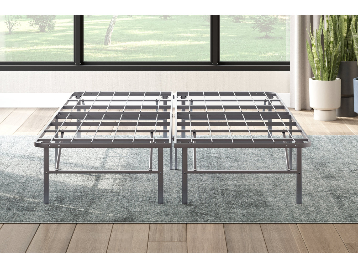 Behold the newest foundation of comfort. This queen mattress riser is an all-in-one support system that takes the place of an ordinary bed frame and box spring. The metal unit sets up quickly and without using any tools, creates a sleep haven with unwavering support. Included brackets attach the riser to a headboard. Even better: the clearance from frame to floor is incredibly spacious and ideal for under-bed storage.
