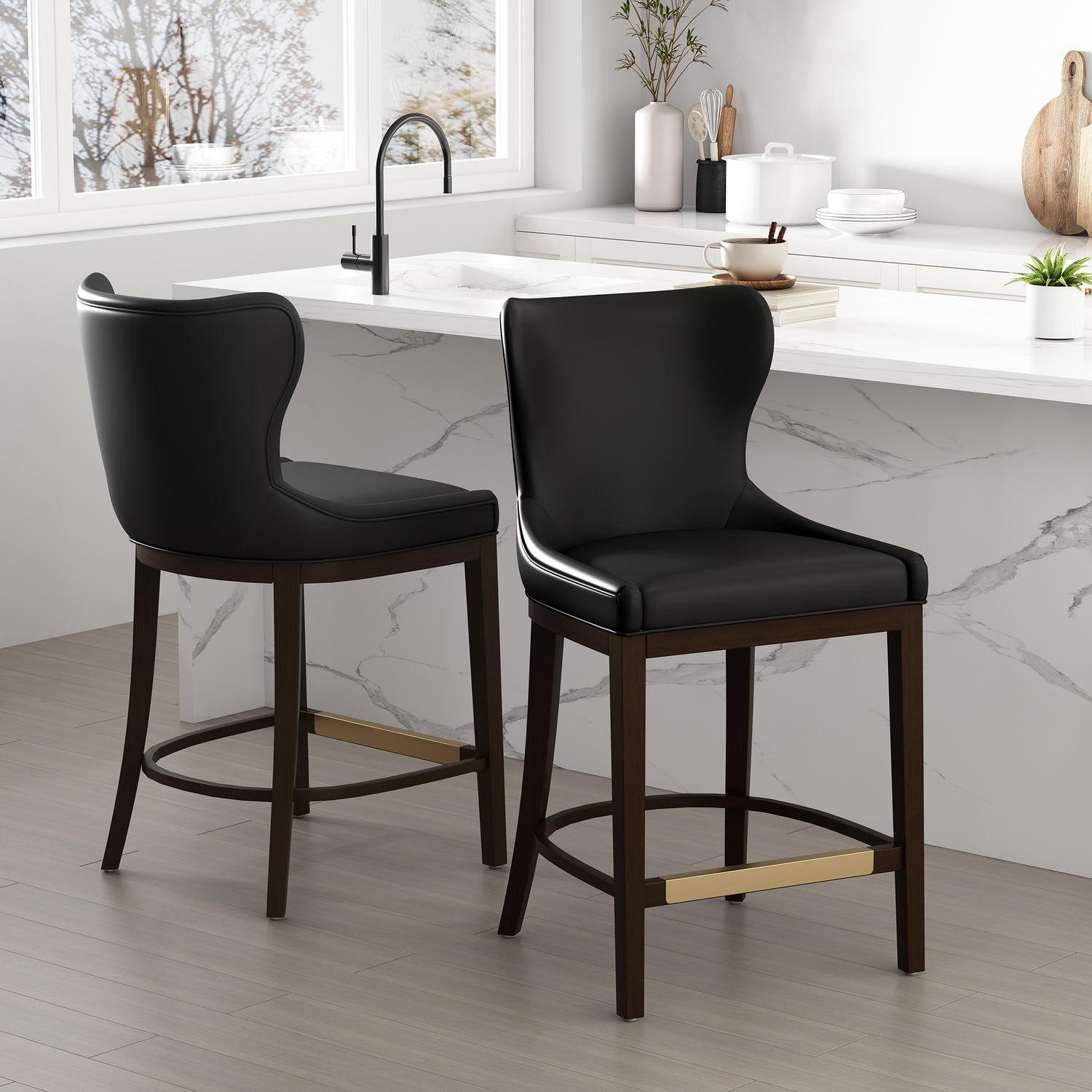 - Subtle Wingback Design for Added Support and Elegance. Armless Design Allows for a Seamless Fit Under Bars or Counters.