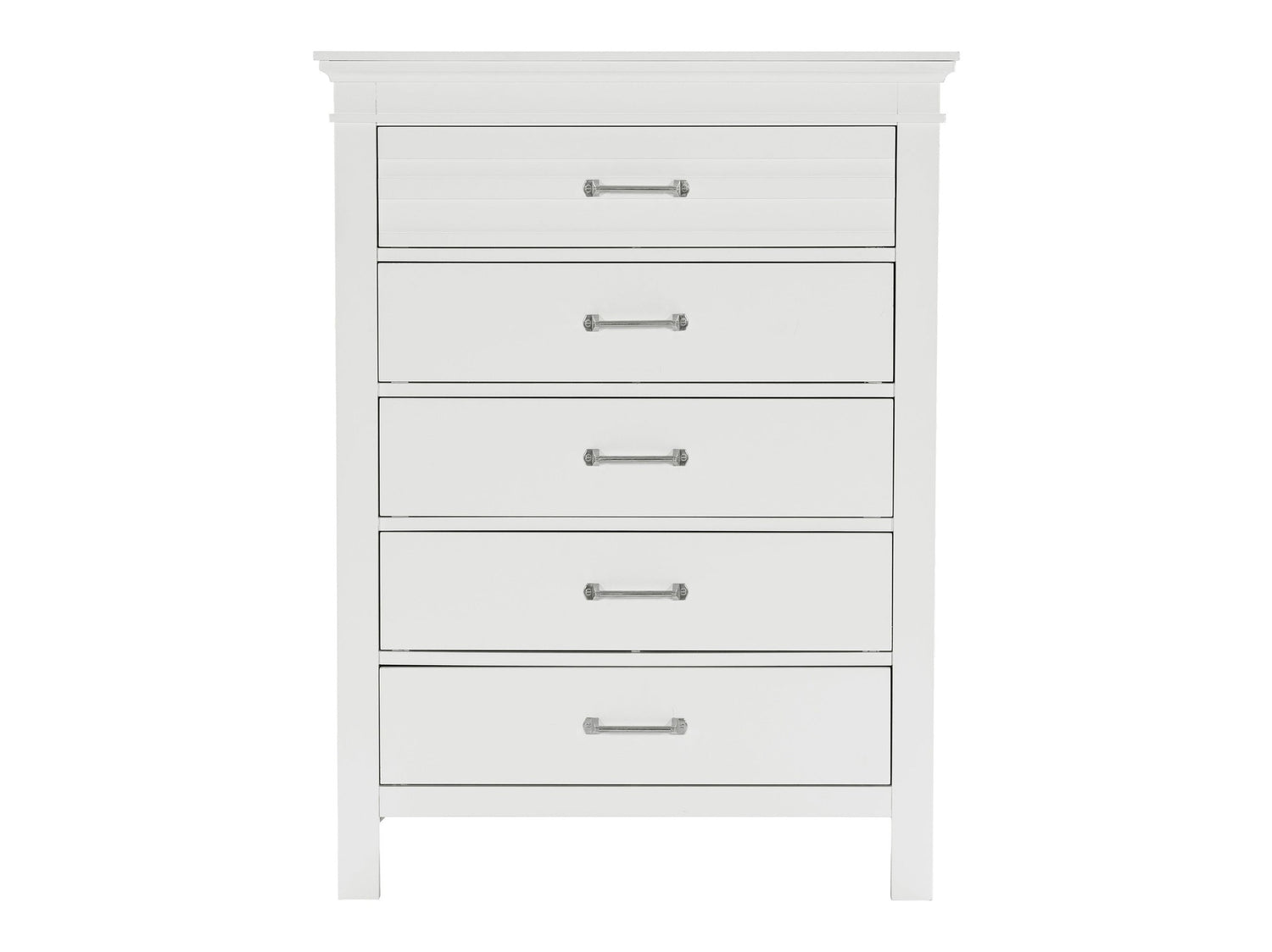 The transitional styling of the Blaire Farm Collection serves as the perfect complement to the rustic aesthetic that inspired the design. Fixed handle pull hardware fronts the drawers while horizontal accent at the top of the drawer lends visual contrast. The white finish that covers the chest lends to a versatile look sure to be a perfect fit in your home.