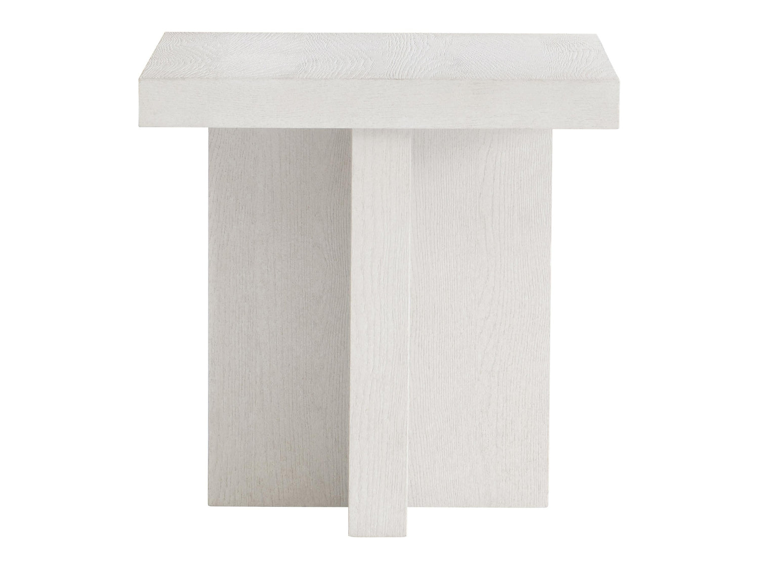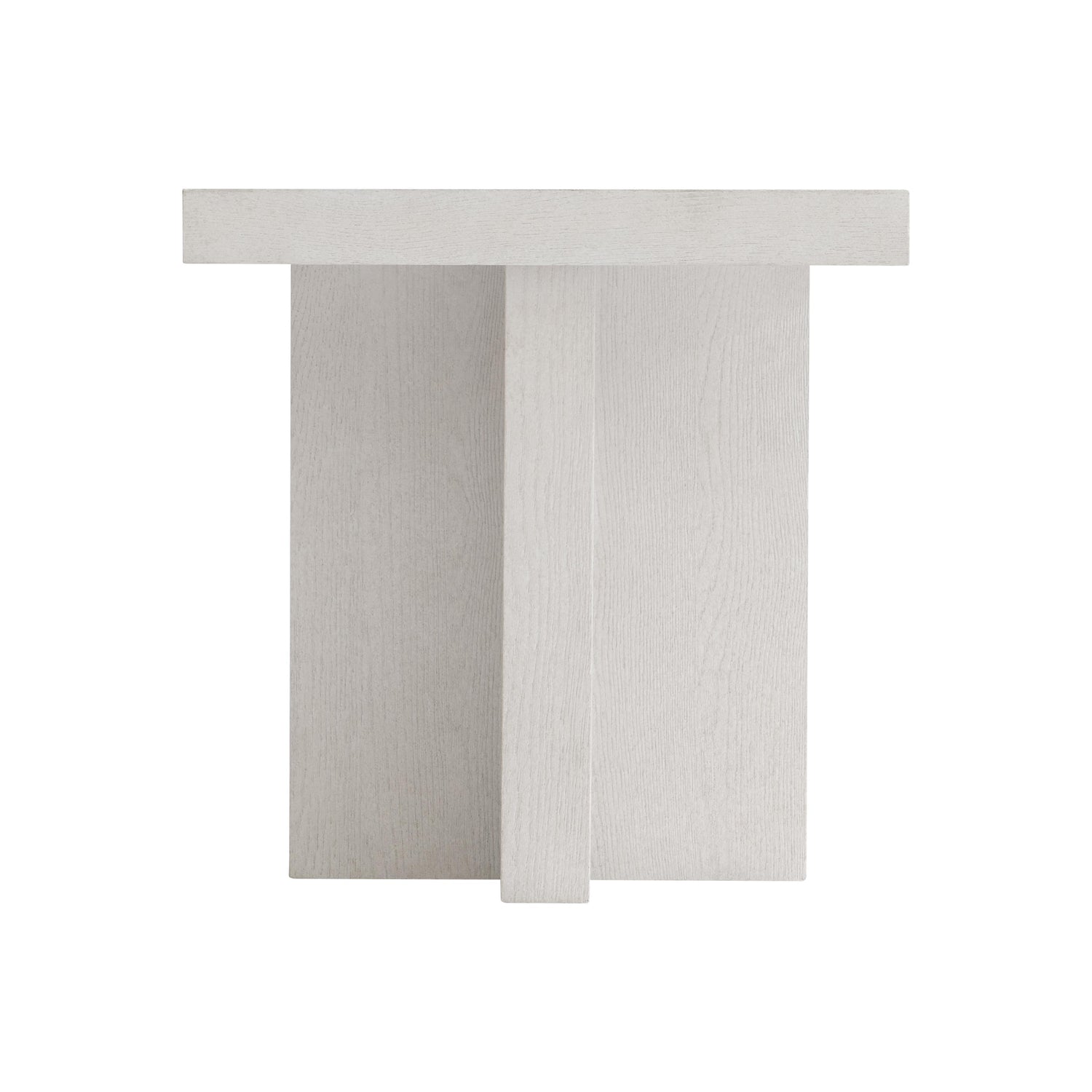 - Square table top on a center base with two leg panels that intersect in the center to form a cross shape