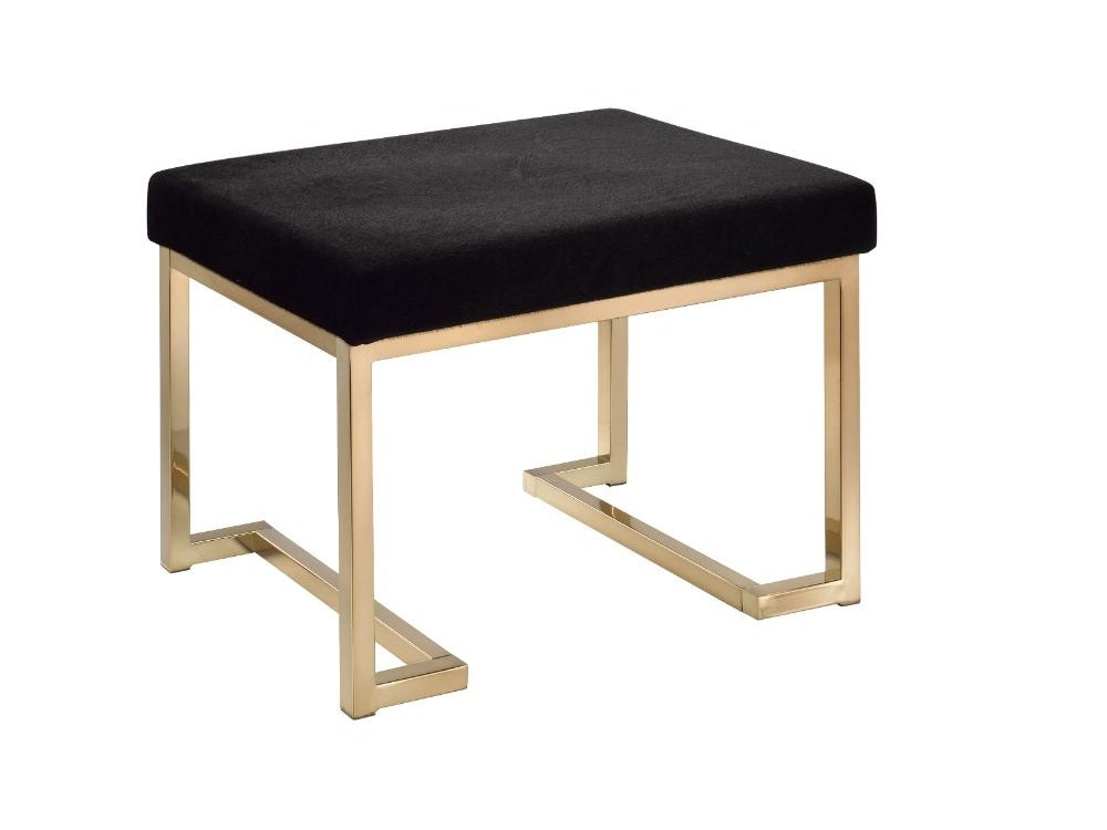 KD, Rectangular Armless Ottoman (Backless) NO Storage Padded Seat: Black Fabric Cushion (Solid Pattern, 100% Polyester Fabric) "C" Metal Base: Champagne Gold Plating, Metal Tube Q&A] Clearance between Floor & Seat Base: 13.75 in