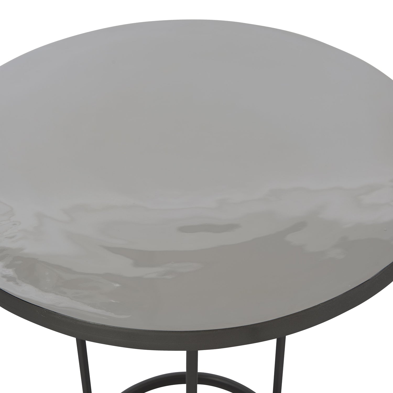- Round side table with cast aluminum top covered with Grey baked enamel finish