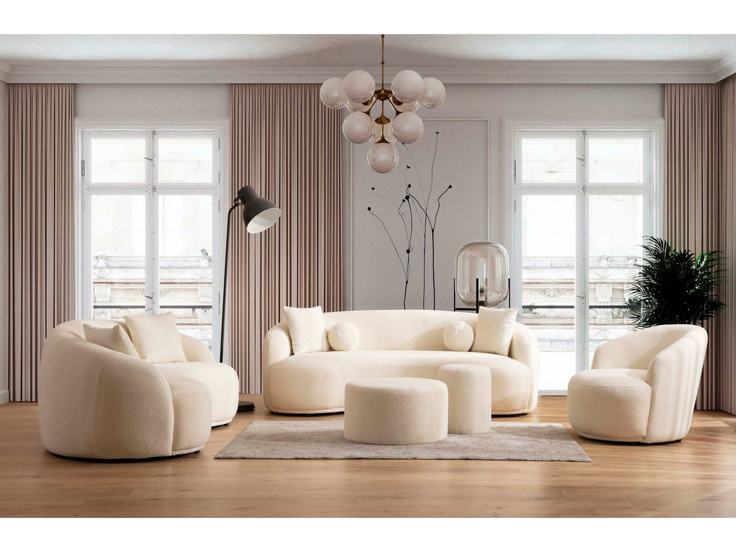 Introducing our Bonita Boucle Sofa Loveseat Set, a perfect combination of style and comfort. Crafted with the utmost attention to detail, this set features luxurious boucle upholstery, known for its softness and texture. The stunning curved structure of this sofa loveseat set adds a touch of elegance to any room. The Ivory color for this set is carefully selected to provide a minimal yet post-modern look. This set features four square pillows and three round pillows, creating a delightful balance of shapes and coziness.