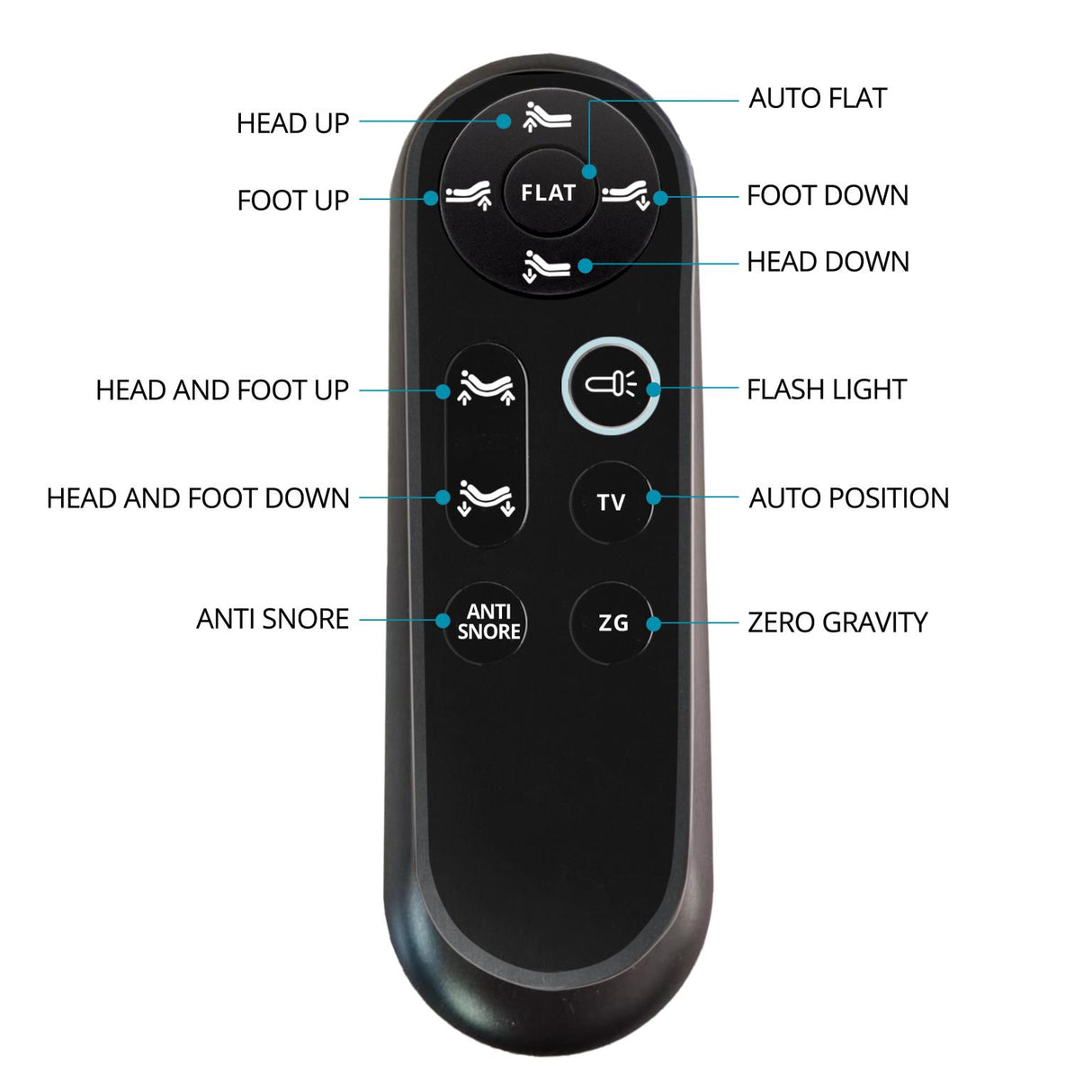 Experience the comfort and health benefits of this Zero-Clearance Power Adjustable Bed Base. With a full range of head and foot adjustments, you can customize your comfort at the touch of a button on the wireless remote. Many users describe improved circulation, reduced lower back stress, and snoring reduction as some of the many benefits. The wireless remote comes pre-programmed with many standard comfort settings, as well as the option to relax in the weightless-feeling bliss of the Zero Gravity position which raises your head and feet to precise angles for total ergonomic comfort and support. Ready to lay flat? Just click the 1-touch auto-flat button.