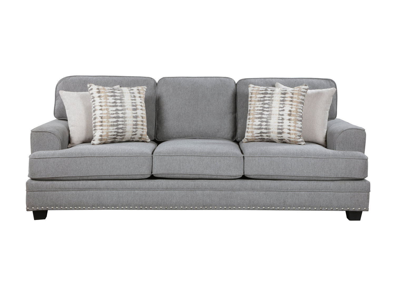 With a transitional design that is a complement to your home’s living room, the Bradford Collection utilizes classic lines, refined texture, and traditional accenting to achieve a universally appealing look. The sofa is covered in gray chenille fabric upholstery. Nail head trim accents the base rails, while profile-defining welting provides a tailored finish. Complementing contrast toss pillows are paired with the sofa.