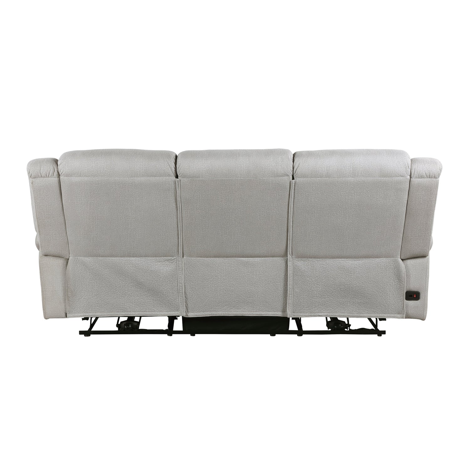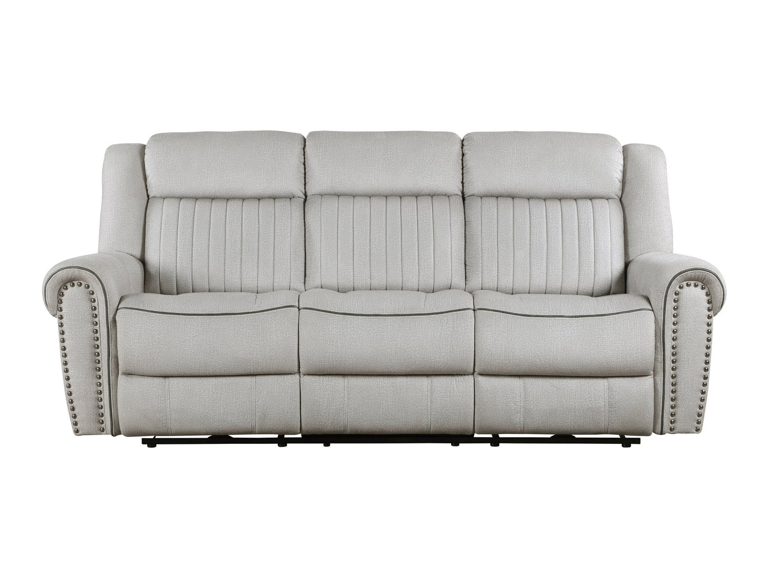 Styled for the transitional home, the Brennen Collection’s comfortable presence will be a perfect match for your casual living room. The sofa of the collection features power reclining mechanisms allowing for ease of motion when going from seated to reclined. Plush seating is defined by the contoured stitching, while the arms of the sofa are accented with nail head trim. Mist-hued textured microfiber covers the seating group, providing soft touch and decorative versatility.