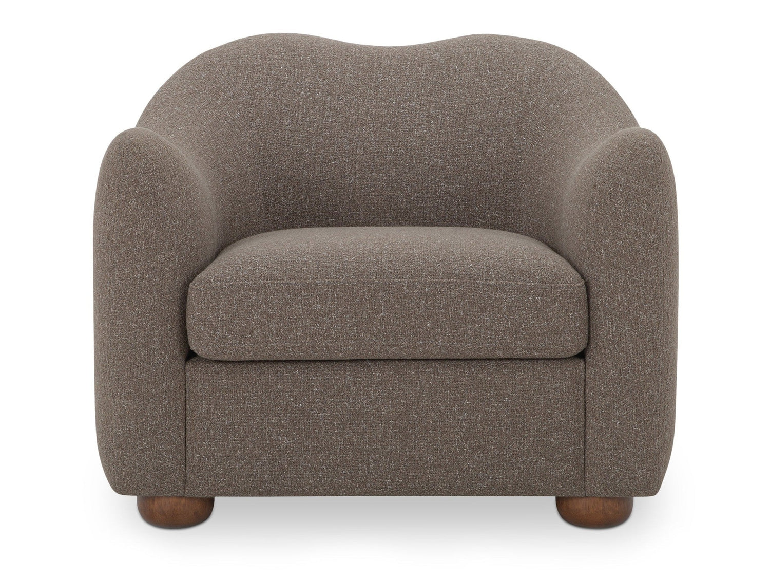 - Vintage inspired with gentle sloped arm & back that follows its curved back- Curved rubber wood foot finished in warm brown