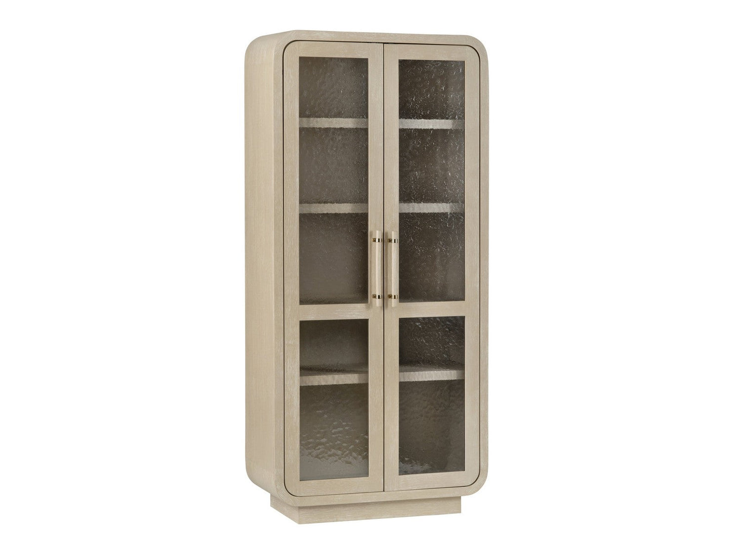 - Two glass-paneled doors include textured, rippled glass for a unique visual effect