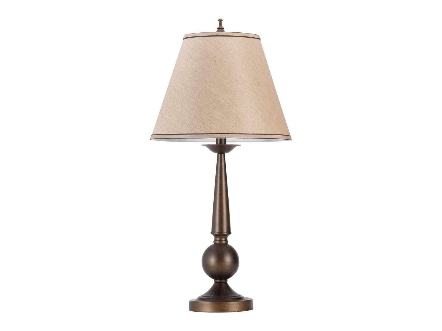 Create a sophisticated visual in a traditional space. Elegant shaping renders a beautiful silhouette in this table lamp. With a lovely bronze finish base, it offers both versatility and a rustic motif. A beige Empire shade adds a perfect finishing touch. Operates with a two-way switch.