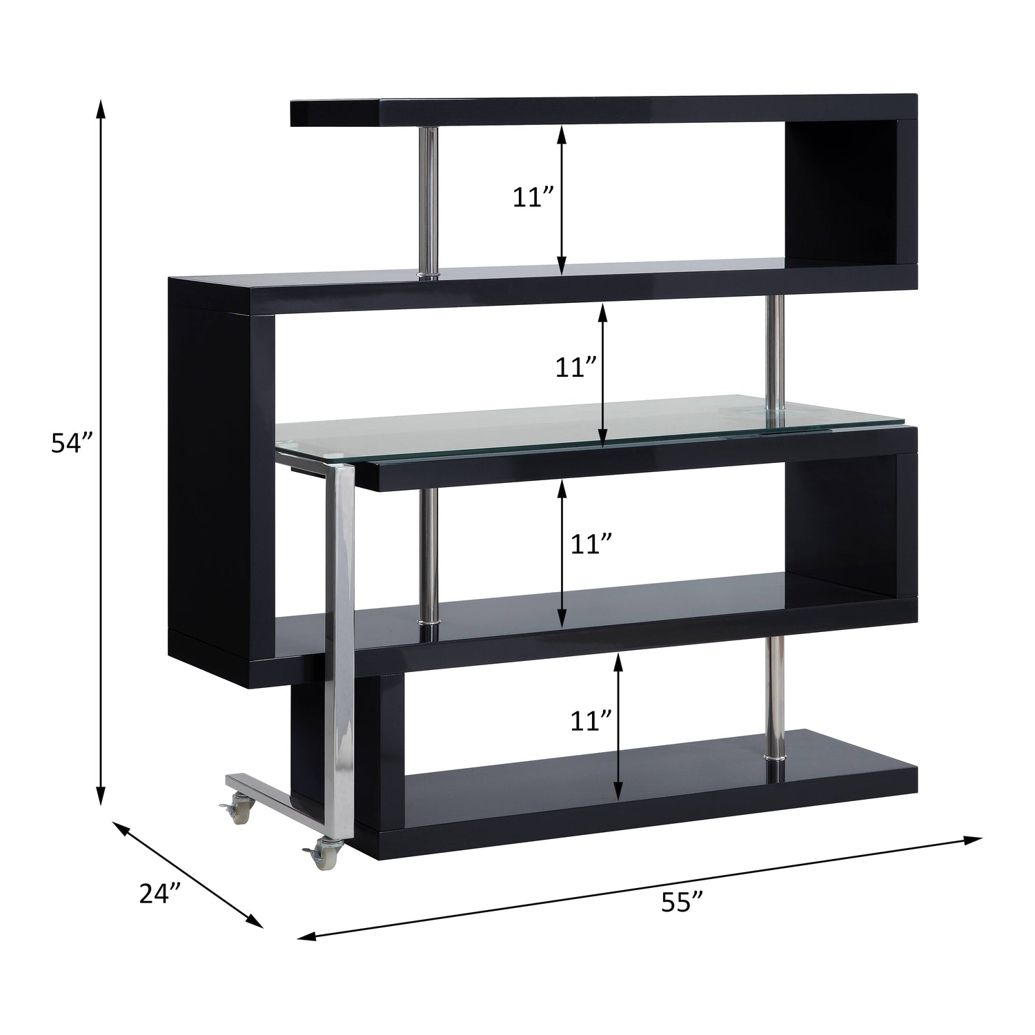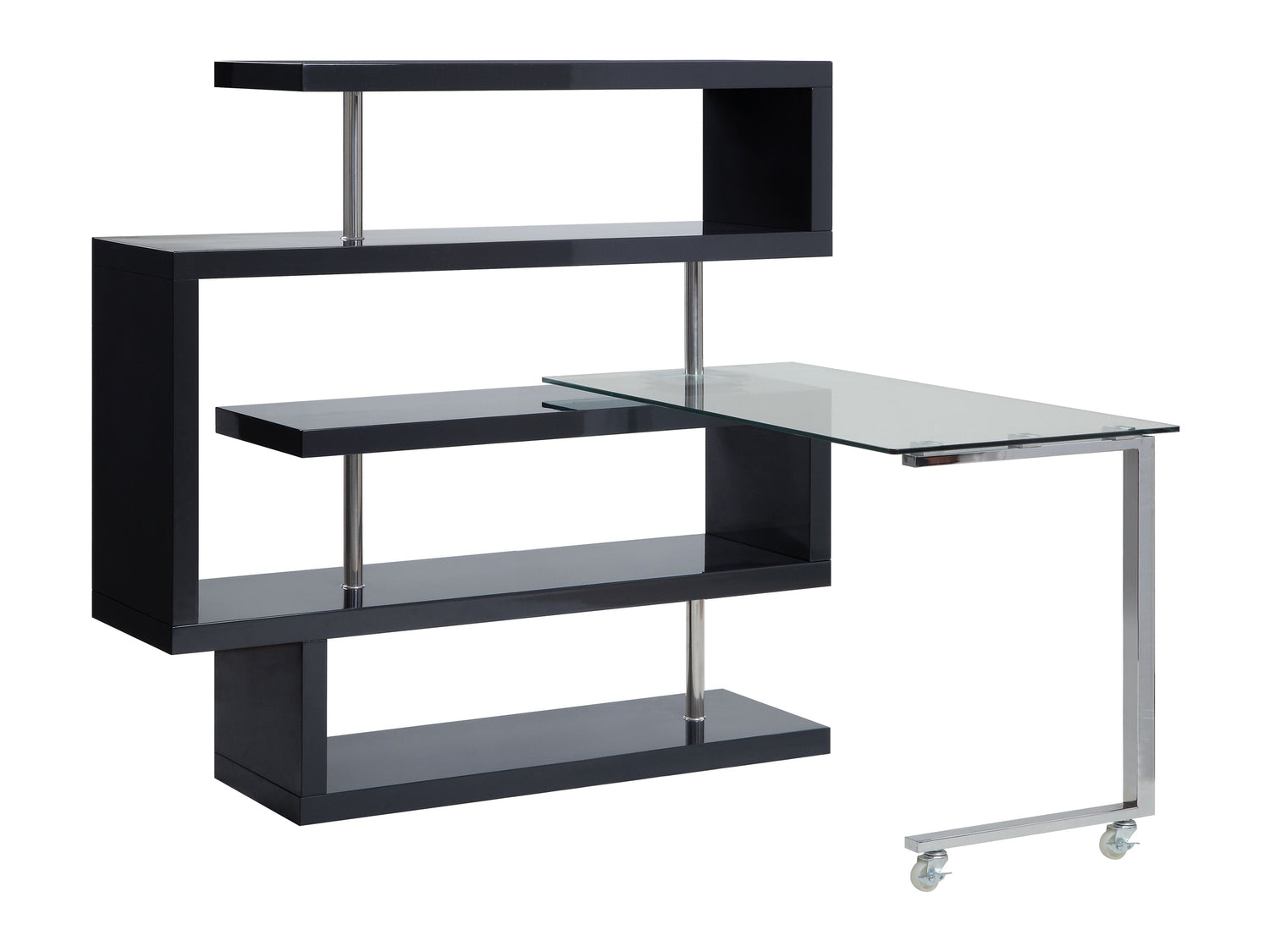 Designed for space-conscious, the Raceloma writing desk with shelves is excellent for those with smaller spaces. The winding S-shaped shelf bookcase instantly transforms any room giving your books and decor a vibrant stage for display. Adding function to the design with a convenient roll-out desk with a sleek glass top, use it as an extra shelf on the bookcase when not in use. This desk makes for a contemporary multi-purpose piece in smaller spaces.