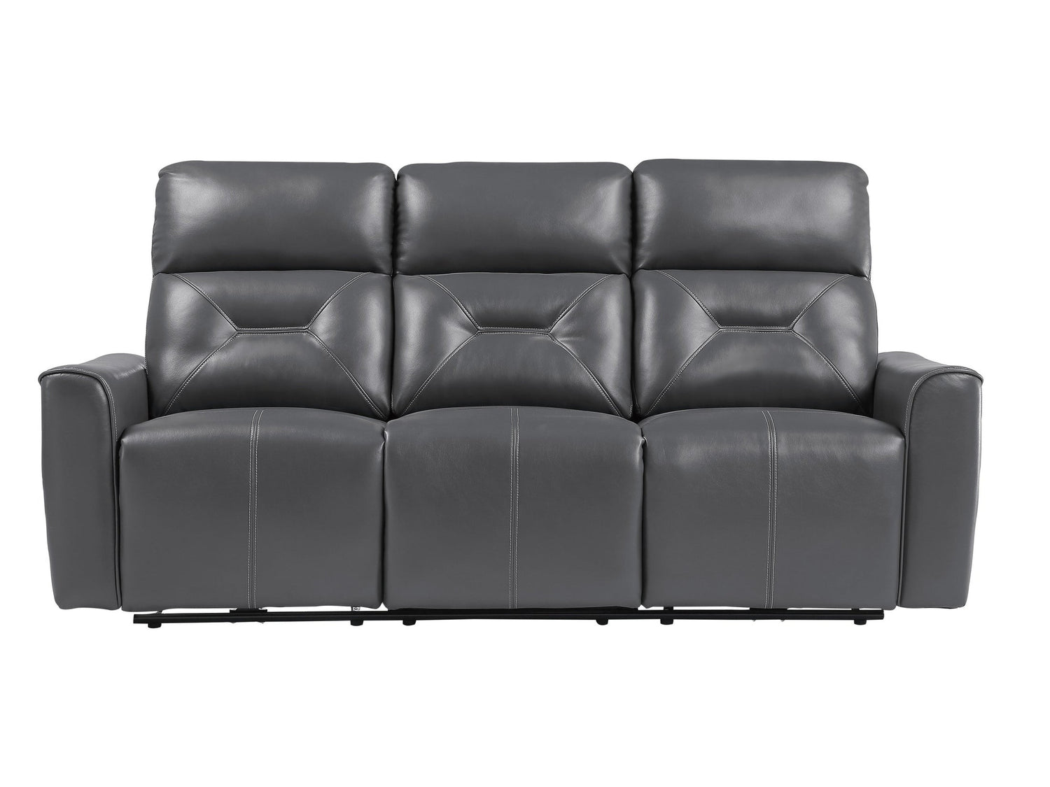 The unfettered modern design of the Burwell Collection presents as a statement of your preference for contemporary design. The sofa is featured with power motion reclining mechanisms, taking you from seated to reclined in an easy motion. The streamlined track-style arms, clean lines and solid front design of the seats further lends to the modern look. The collection is offered in cobblestone gray textured faux leather.