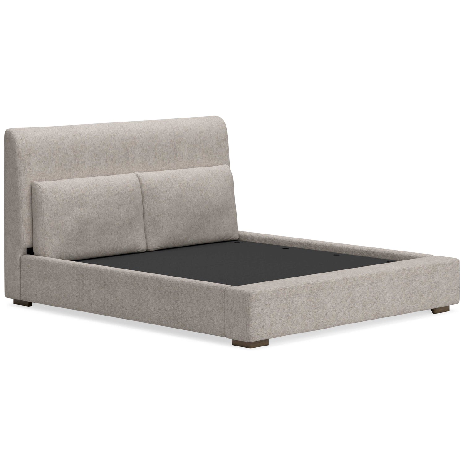 This California king-upholstered bed sits comfortably at the intersection of modern lodge and farmhouse aesthetics. Your warm and welcoming disposition is reflected in its subtly tapered headboard and all-over upholstery. Even with its poise, the bed remains practical. Loose pillows on the headboard keep comfort a priority as you lay back to read or watch TV, defining your bedroom with reliable function and style.