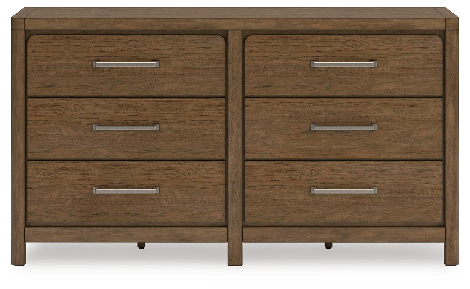 This dresser sits comfortably at the intersection of modern lodge and farmhouse aesthetics. Your warm and welcoming disposition is reflected in the charming architectural elements and light brown glazed finish. Even with its poise, the dresser remains practical. Smooth-gliding drawers tuck away necessities, defining your bedroom with reliable function and style.