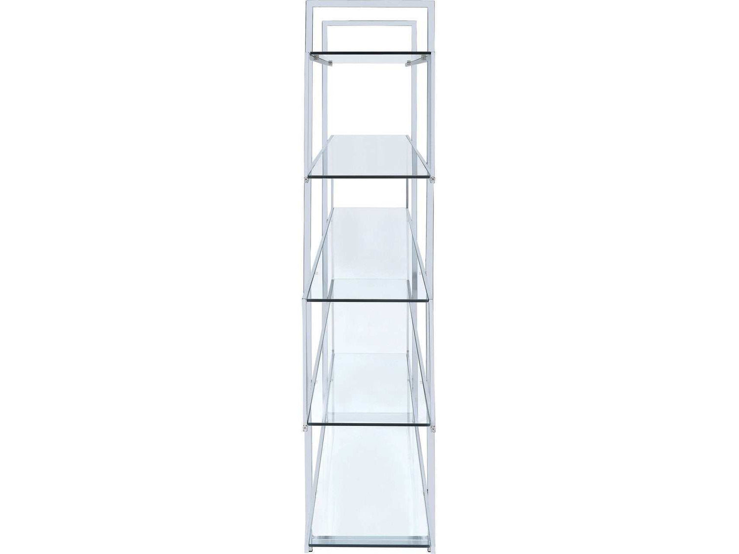 Jump on a trendy, modern bandwagon. Refresh a contemporary space with a stylish piece designed to organize and display. This four-tier bookcase offers a cool profile with personality. Tempered glass shelves blend perfectly with a steel frame. Make room for books, photos, and decor on this edgy, attitude-rich piece.