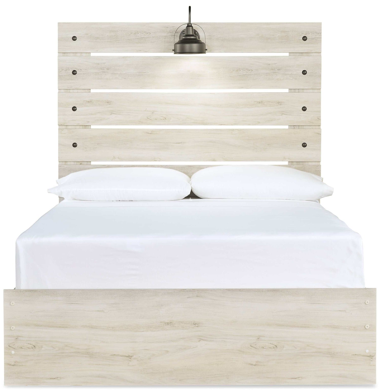 What a delightful take on rustic industrial style. Whether a modern loft or a modern farmhouse, this full panel bed makes itself at home. The wispy whitewash palette enhances without covering the grain for that weathered look you crave. Love to read in bed? You’re sure to find the retro-chic light sconce and USB plug-ins on the open-slat style headboard such a bright idea.
