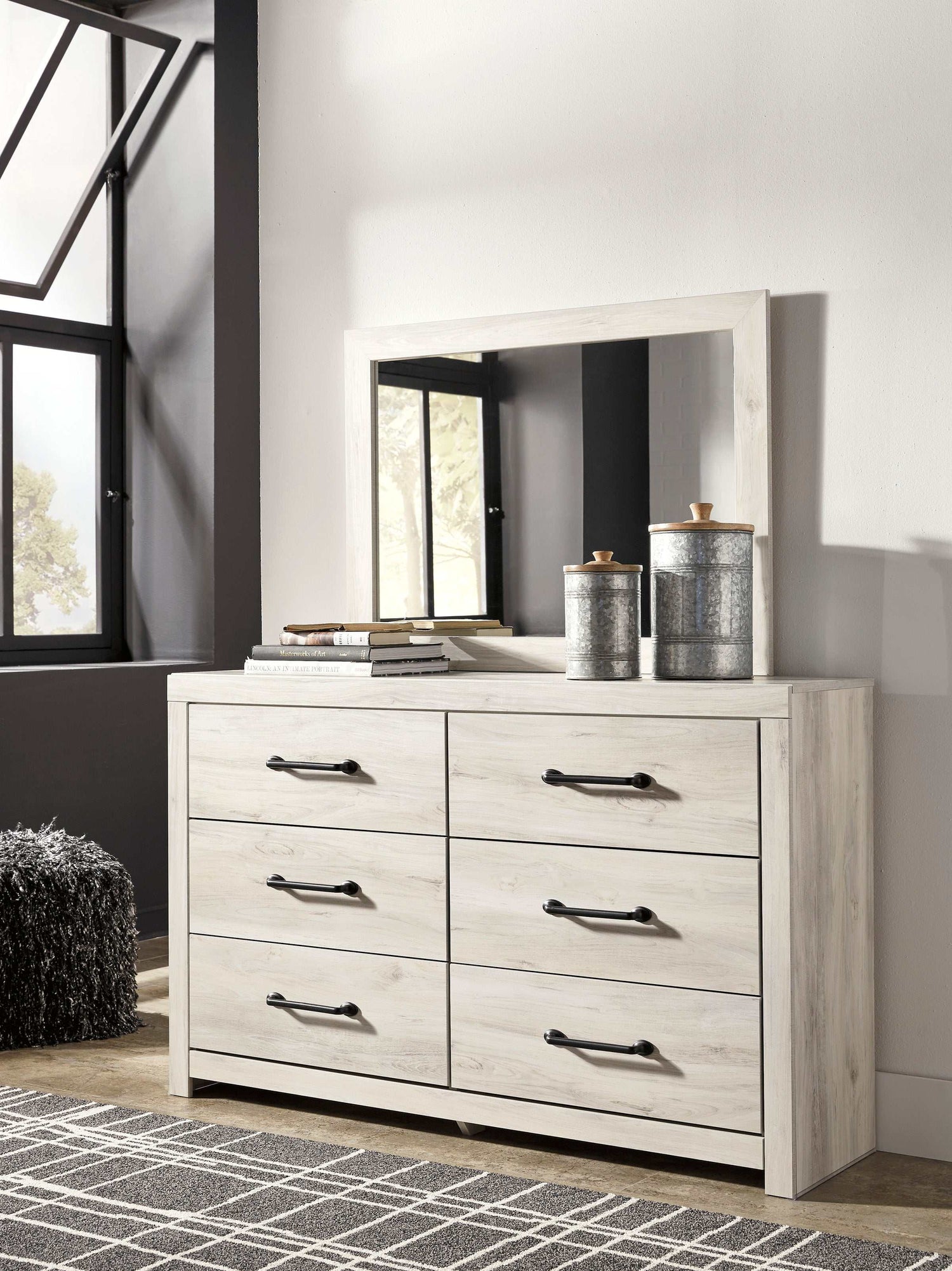 - Dresser with mirror: Made of engineered wood (MDF/particleboard) and decorative laminate