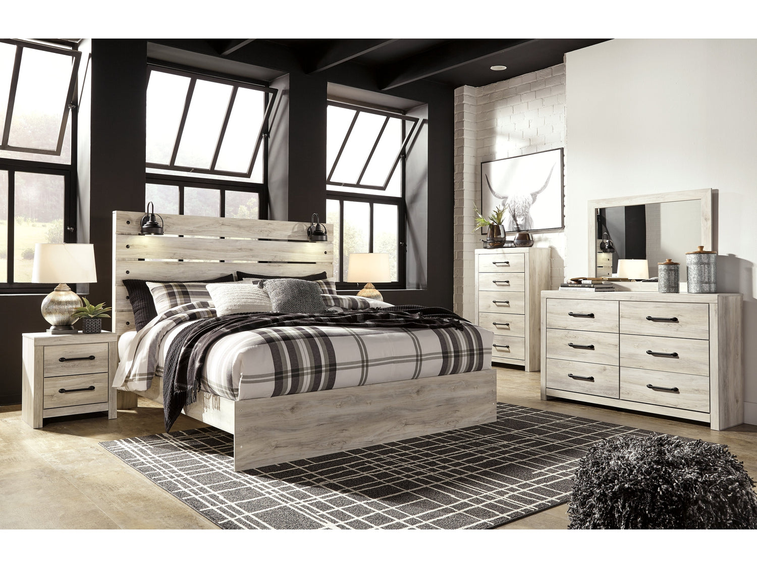 - Item Name: Cambeck Whitewash King Panel Bed, Dresser, Mirror, Chest and 2 Nightstands