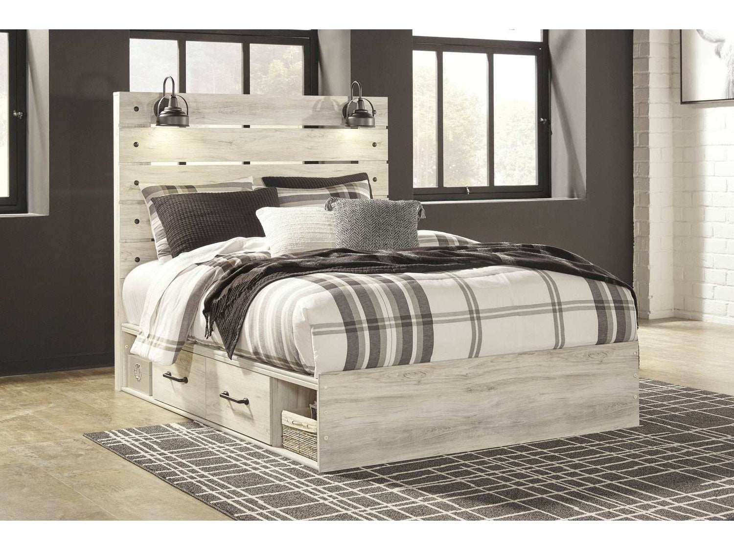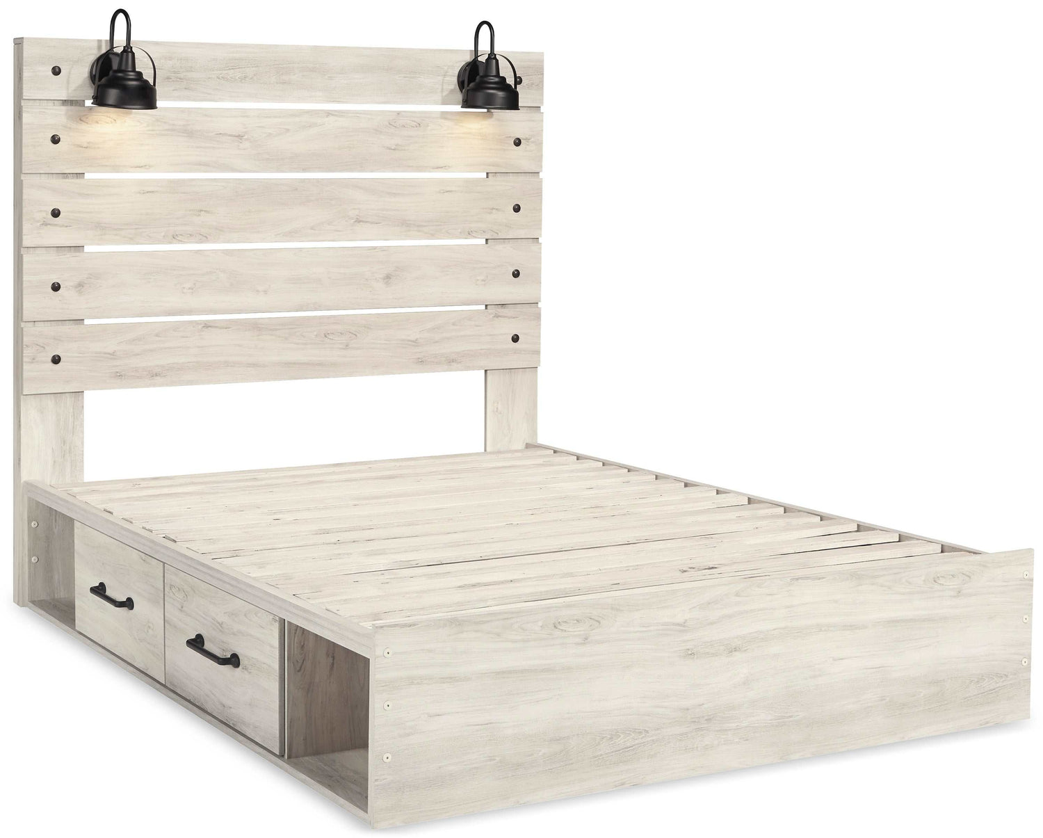 Cambeck Whitewash Queen Panel Bed w/ 2 Storage Drawers