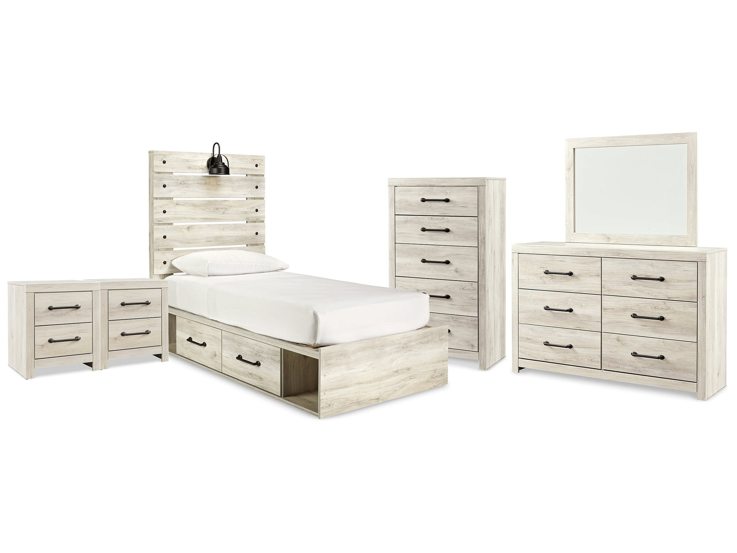 - Item Name: Cambeck Whitewash Twin Panel Bed with Storage, Dresser, Mirror, Chest and 2 Nightstands