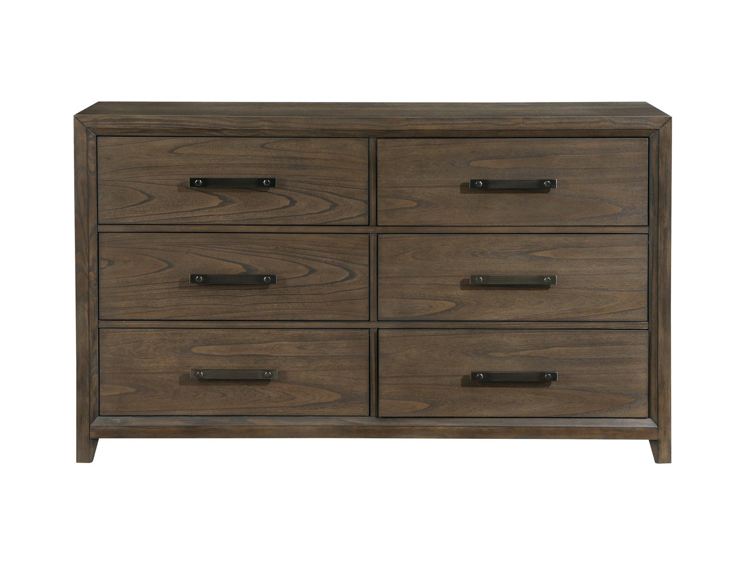 Each design element that creates the classic look of the Cambridge Collection is a study in refined elegance. The prominent grain of the dresser’s mindy veneer is highlighted with a dark walnut finish. Black nickel tone hardware provides complementing detail to the dresser.