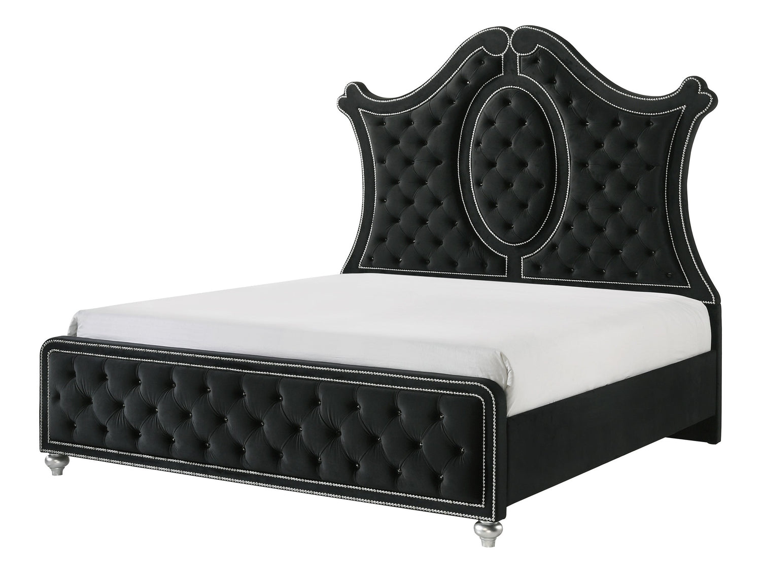 Item Name: Cameo Black QueenUpholstered Panel Bed