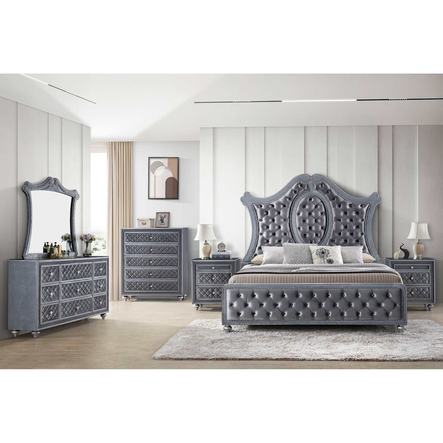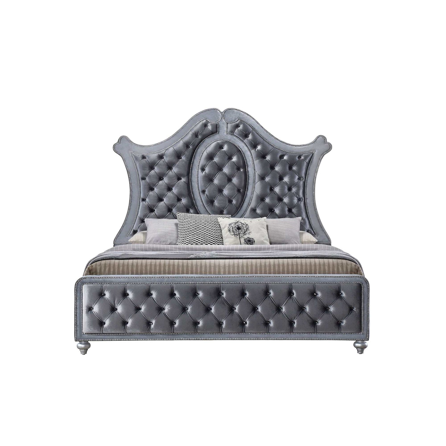 - Item Name: Cameo Gray Upholstered Panel Bed