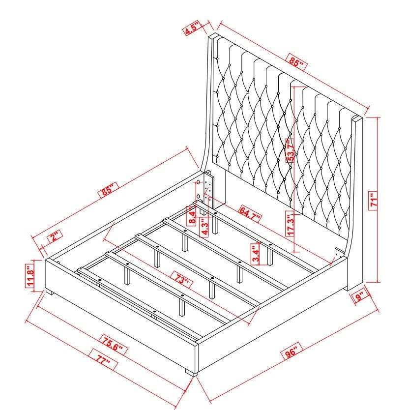 This impressively-styled bed makes a bold yet fashionable statement. It features an imposing, 72" high headboard that's bold. Yet, the headboard comes with button tufted fabric that's stylish and eye-catching. The bed sits on solid wood legs finished in lush cappuccino for a touch of charm. This bed is a graceful addition to the bedroom.