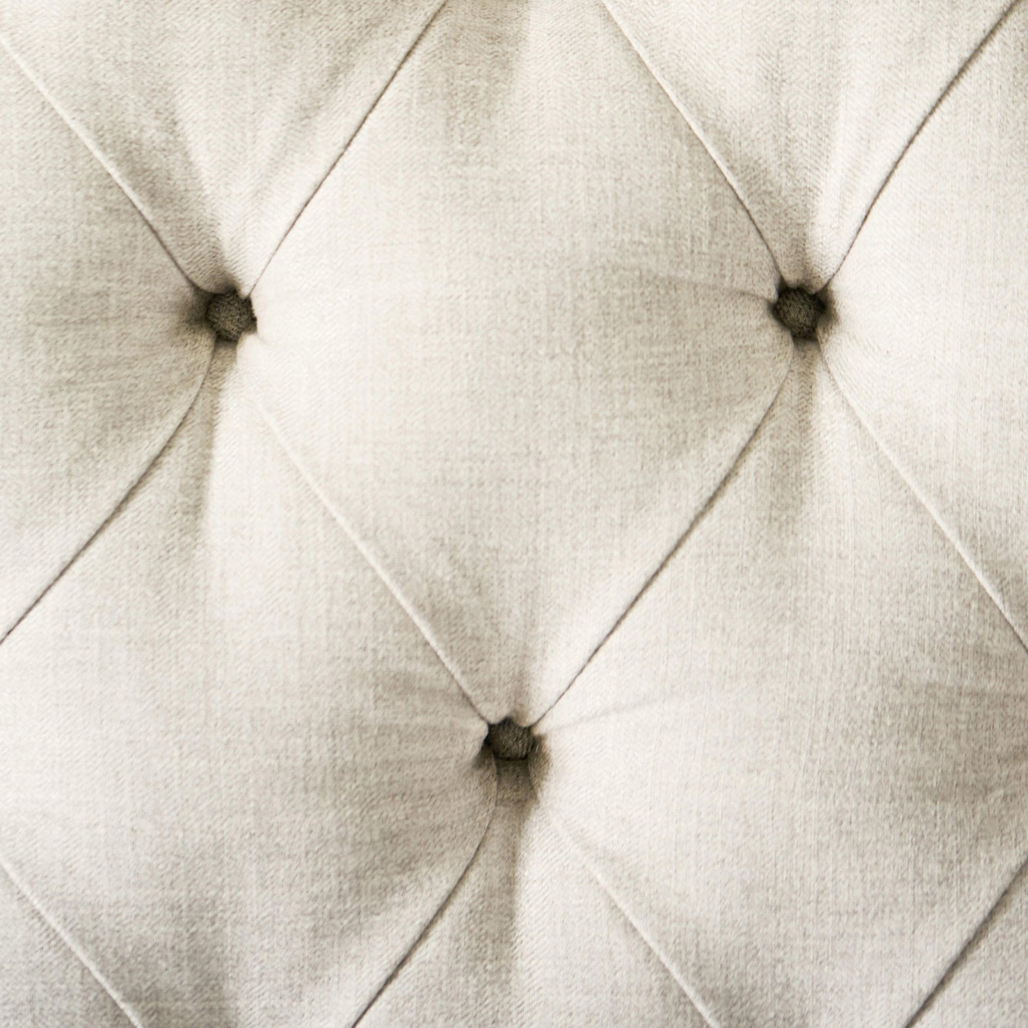 - Wood-framed headboard with decorative carving and upholstered, button-tufted panel with welt