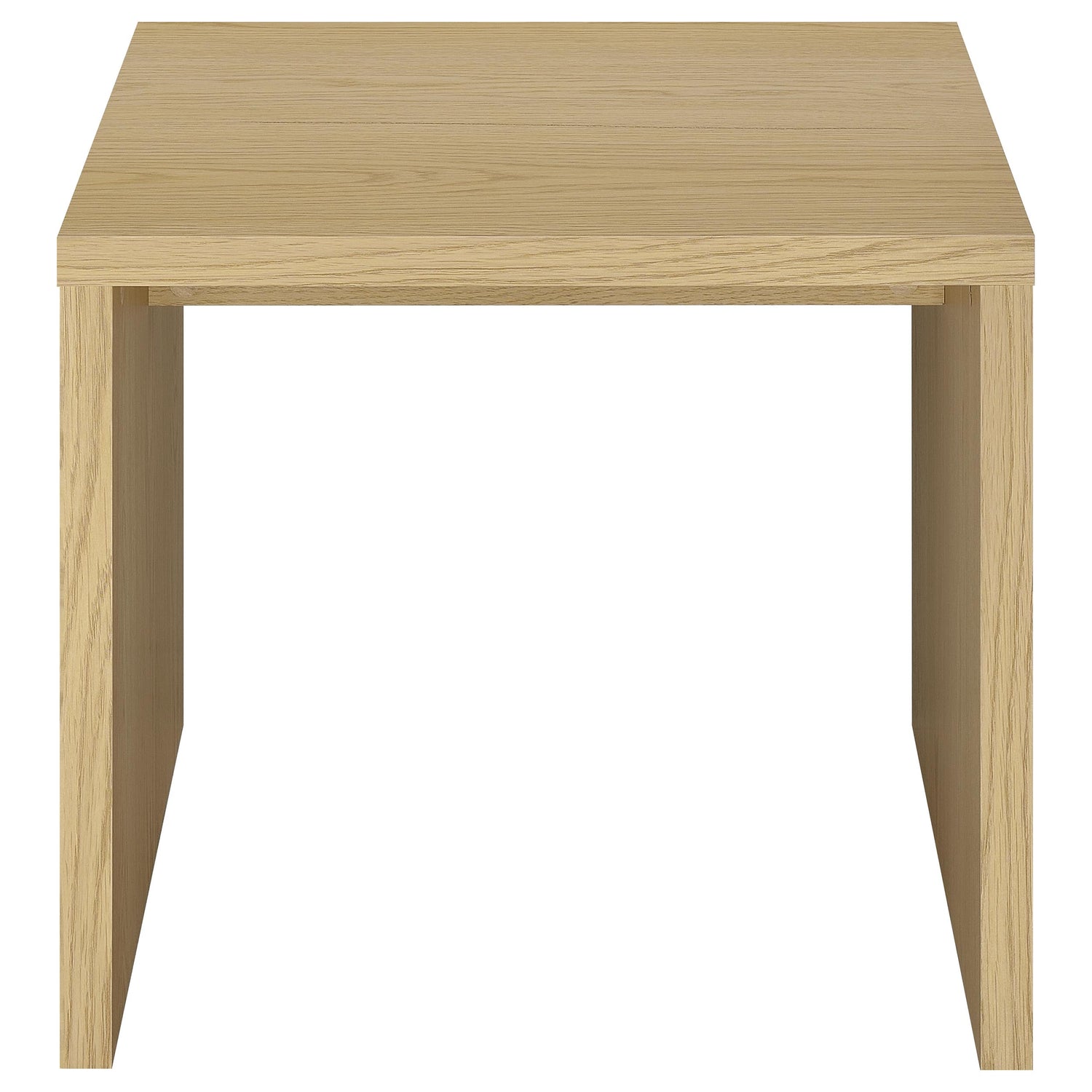 - Coffee table set with minimalist silhouettes and natural wood-inspired light oak finish,