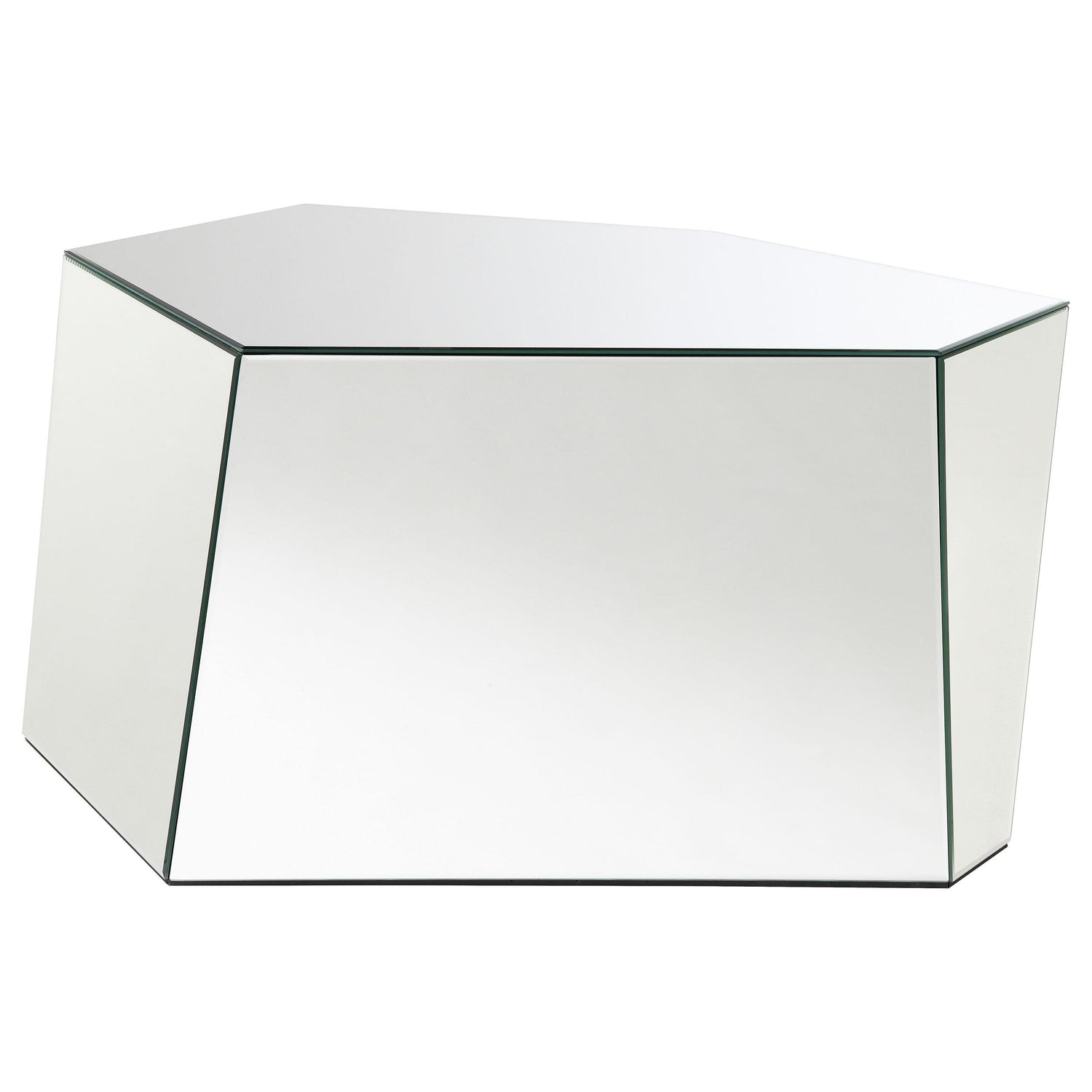 - Mirrored coffee table set with hexagonal silhouettes and geometric design