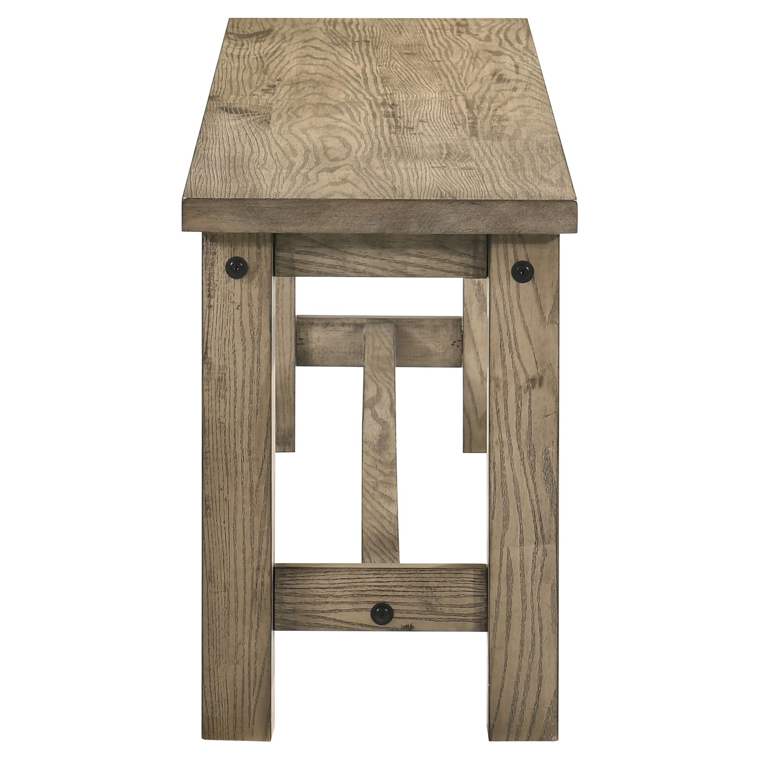 - Includes: One (1) extension dining table, four (4) side chairs, and one (1) bench