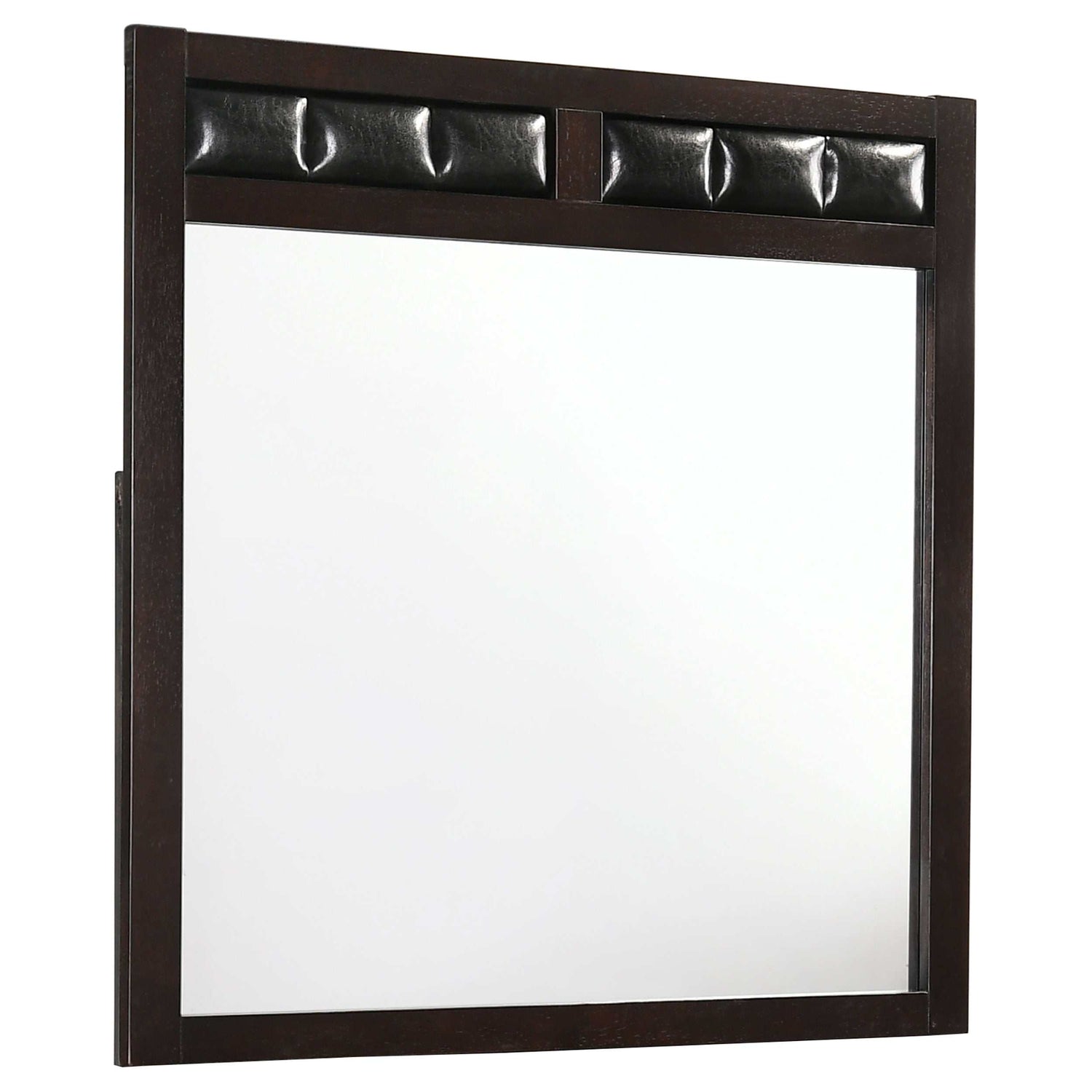 mirror accentuated with leatherette padding topping its frame