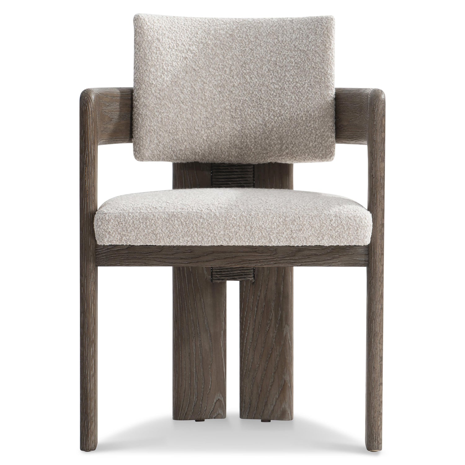 - Twisted rope-wrapped vertical panel on center back of chair frame
