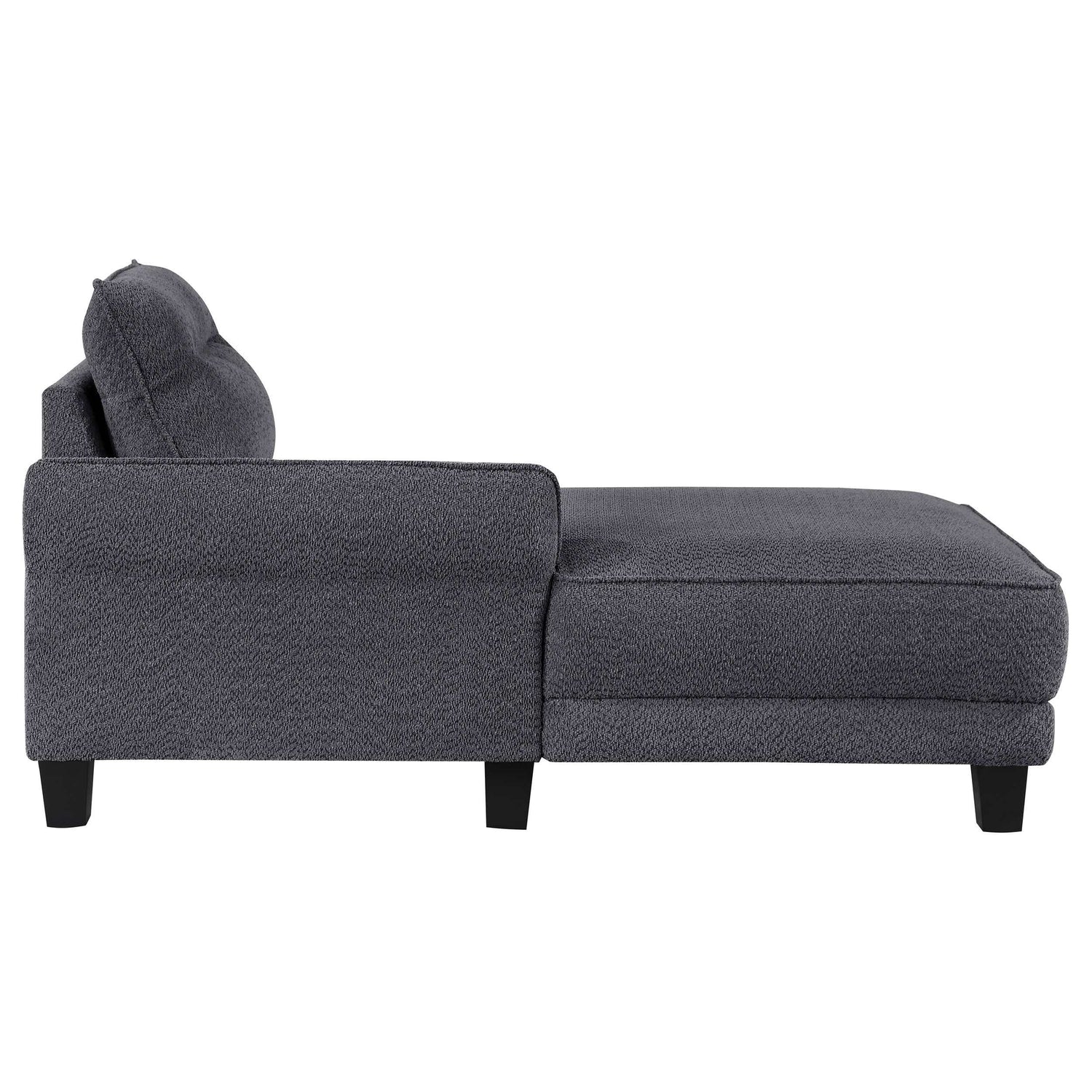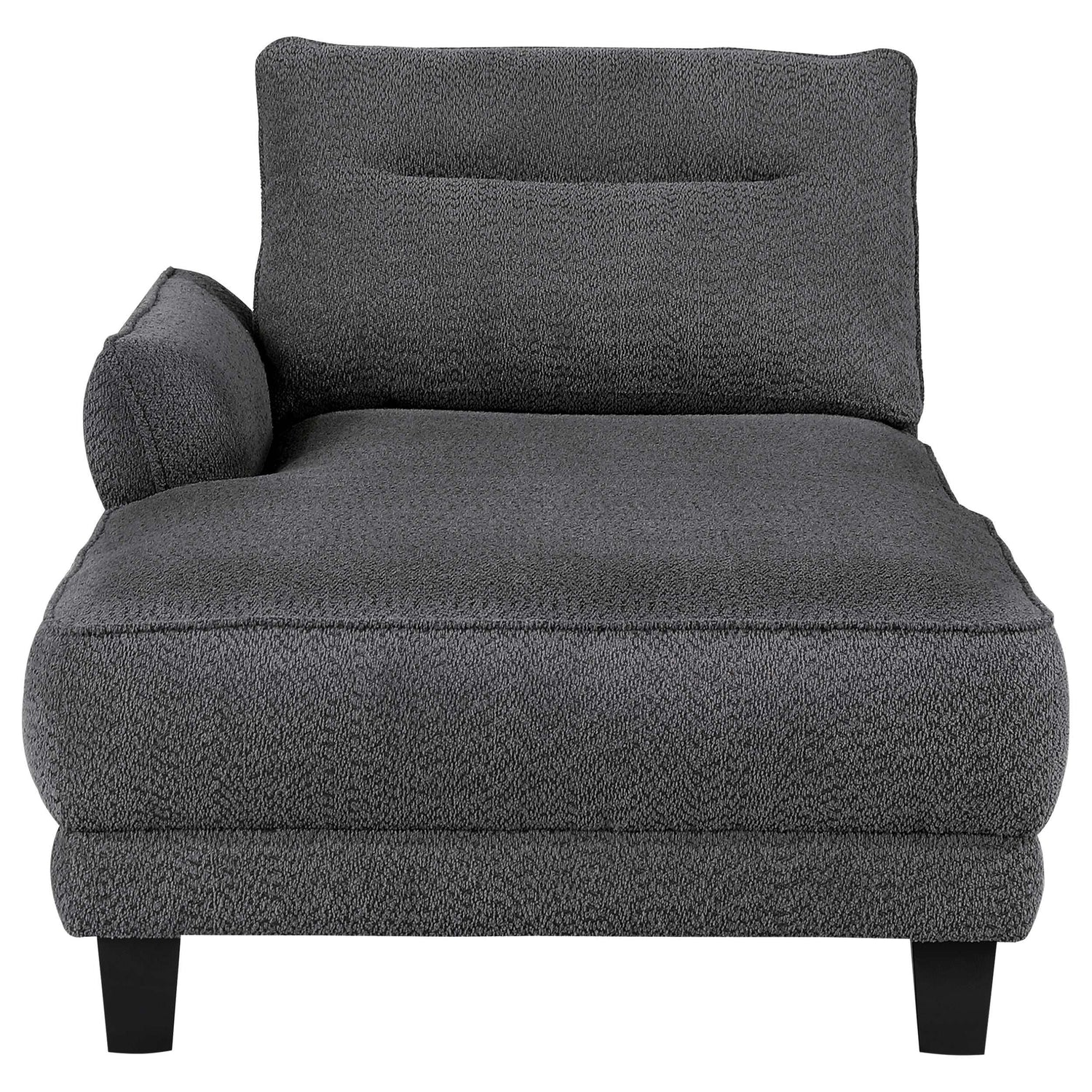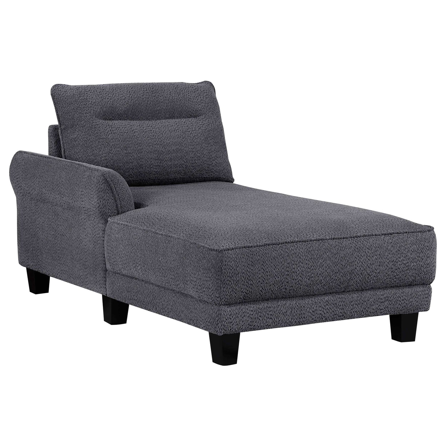 The Caspian Grey Sectional is a modern two-piece sofa chaise constructed from fuzzy teddy bear-like textured fabric upholstery that offers ultimate comfort. Its design combines softly rounded arms with a sturdy foundation, providing both modern style and lasting use for any living space.