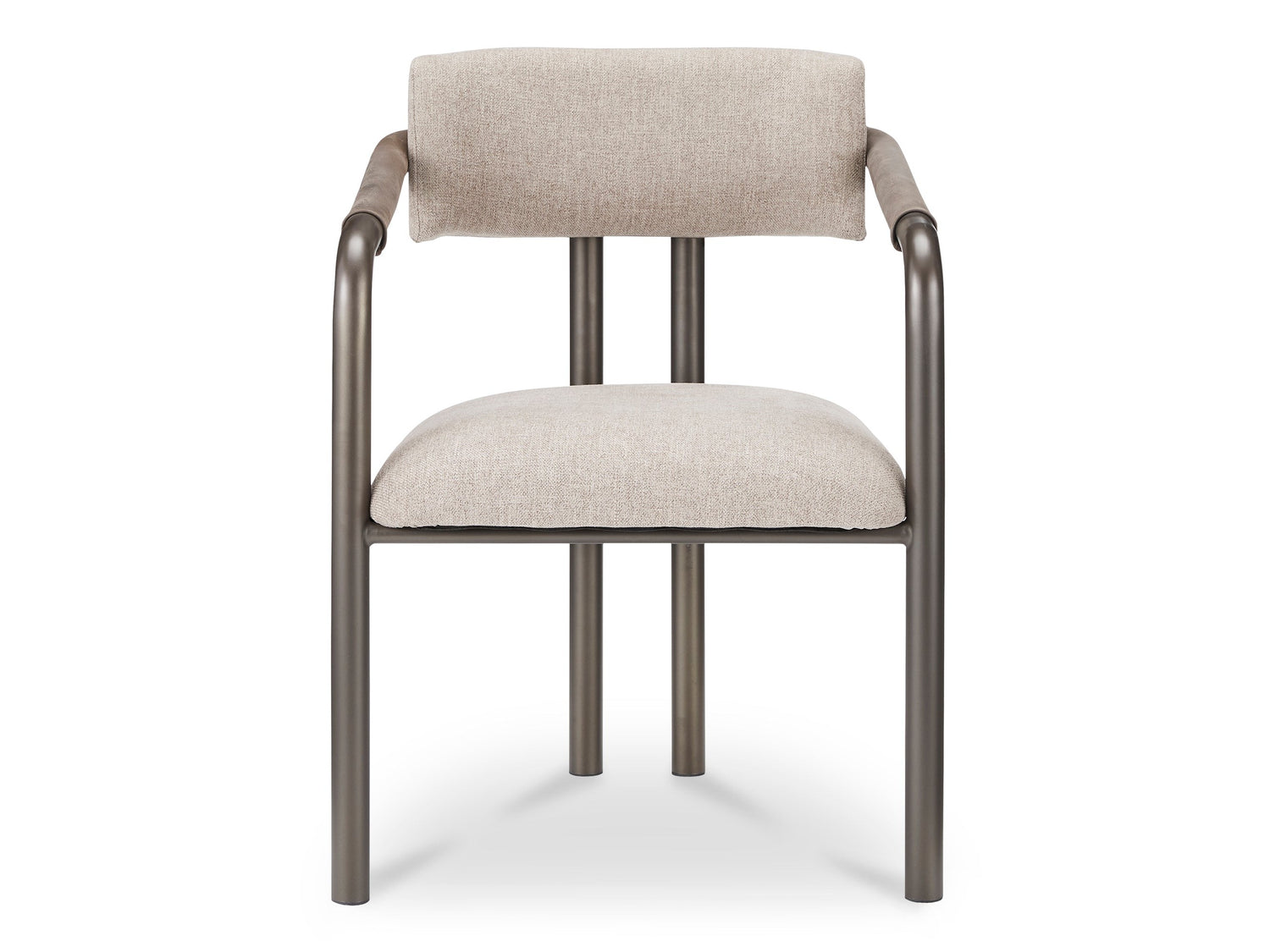 - Back & seat upholstery: 100% polyester. Arm upholstery: 100% top-grain leather. Iron frame with foam & plywood