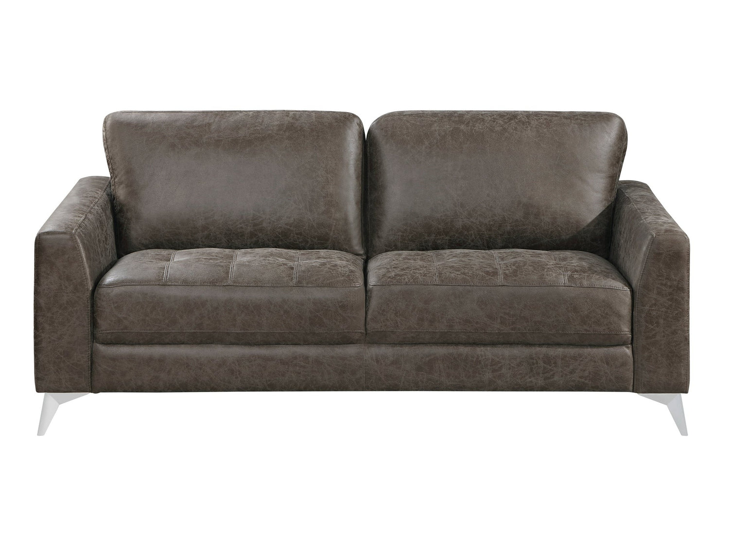 Elegant modern styling is achieved in the design of the Cazon Collection making its addition to your living room a perfect complement to your home’s decor. The lines of sofa’s profile create definition in their simplicity - from the seat cushions to the polished silver finish of the support legs. The collection is covered in brownish gray polished microfiber.
