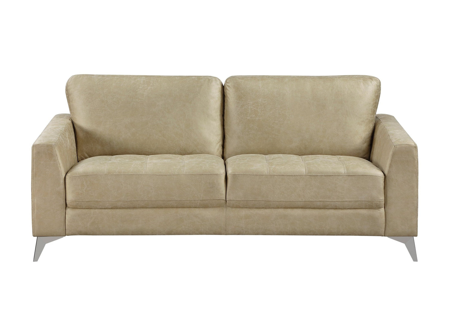 Elegant modern styling is achieved in the design of the Cazon Collection making its addition to your living room a perfect complement to your home’s decor. The lines of sofa’s profile create definition in their simplicity - from the seat cushions to the polished silver finish of the support legs. The collection is covered in sand-hued polished microfiber.