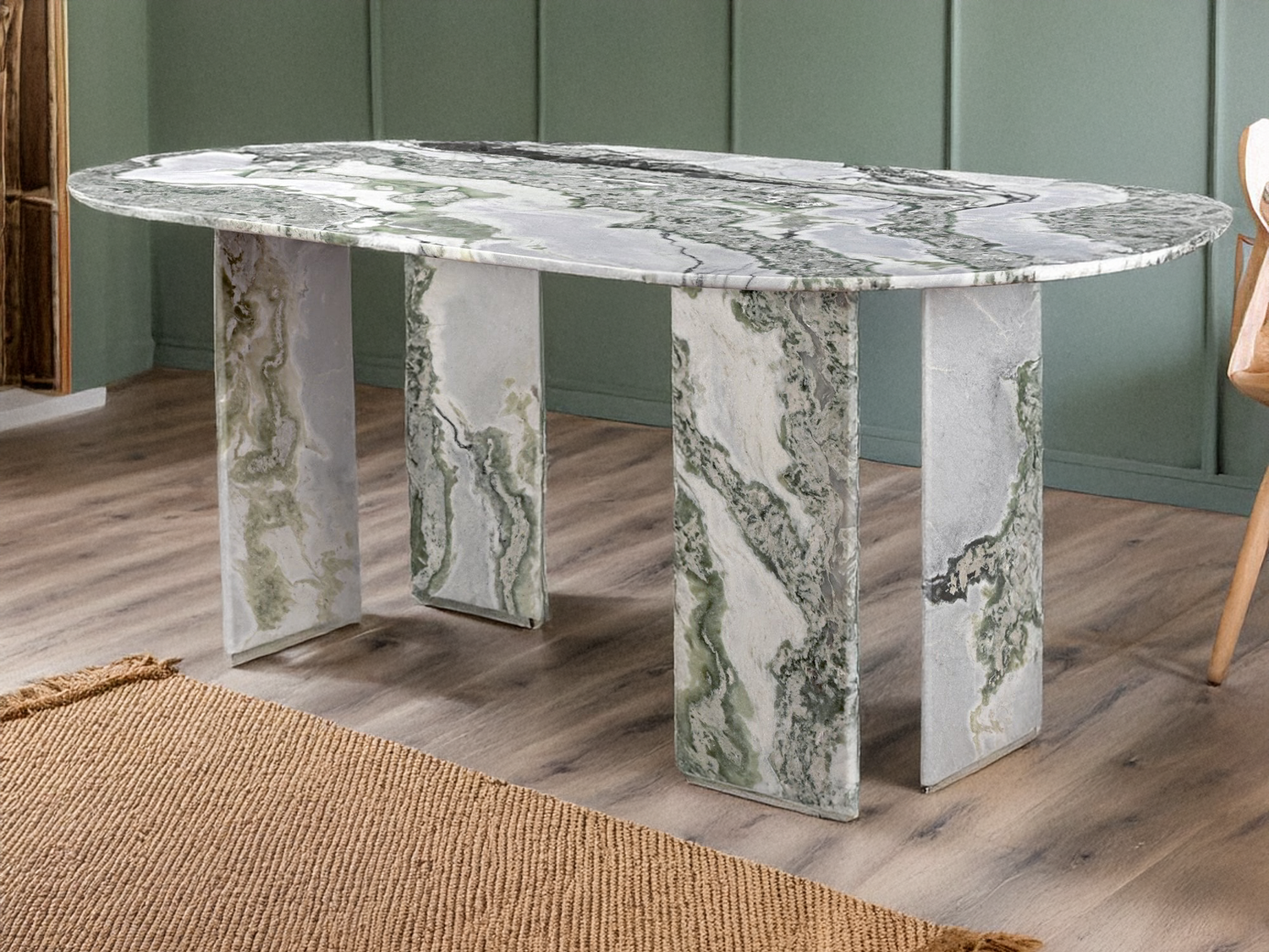 - Item Name: Celia Green Onyx Marble Oval Dining Table