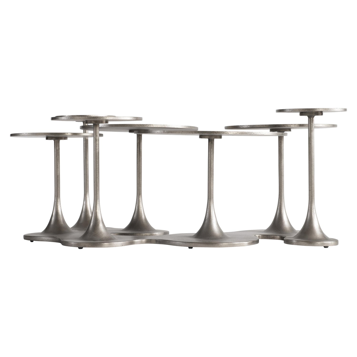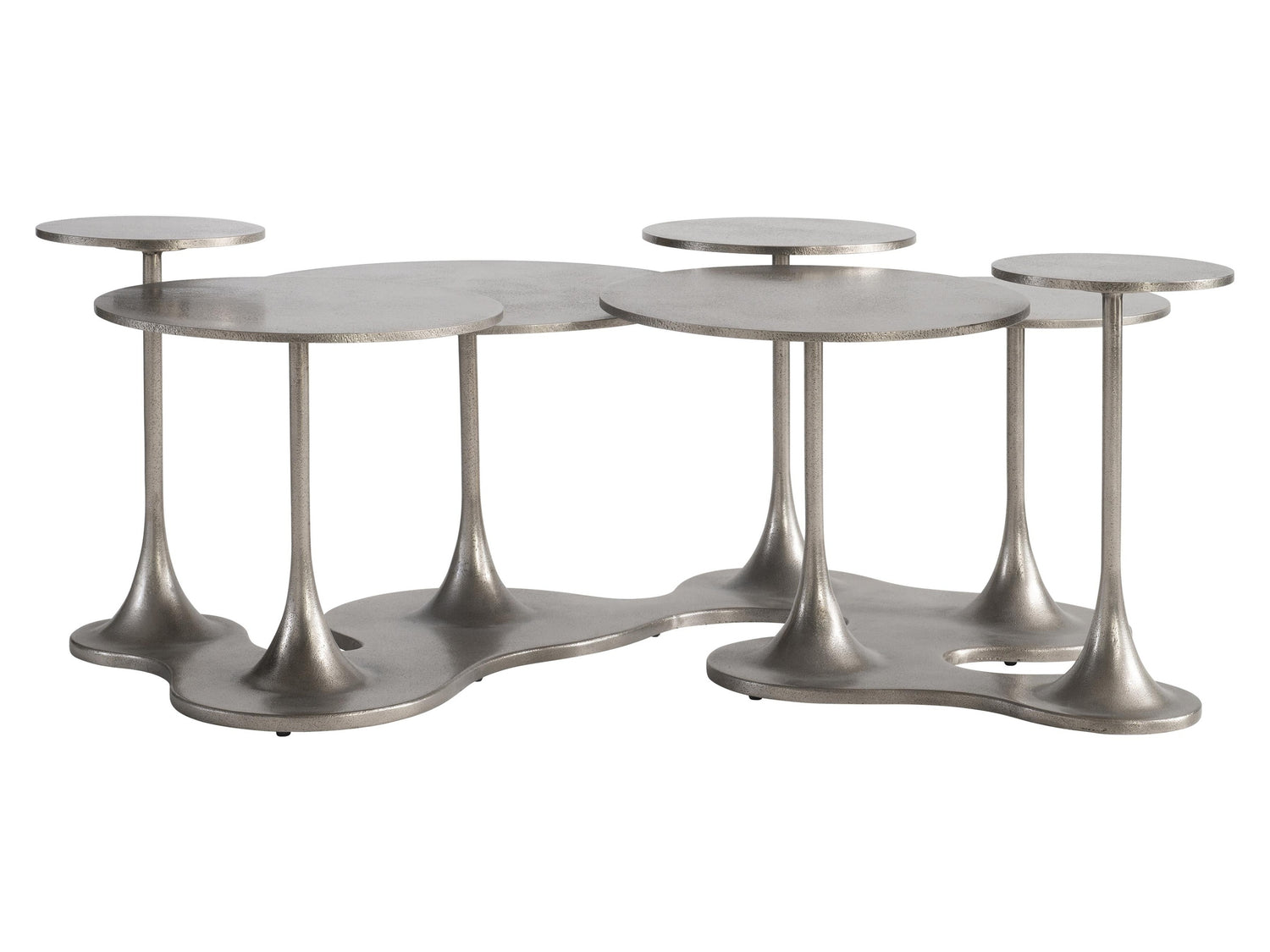 - Sculptural Design: Features seven varied tulip tables with slender stems connecting to a central base, creating dynamic visual interest.