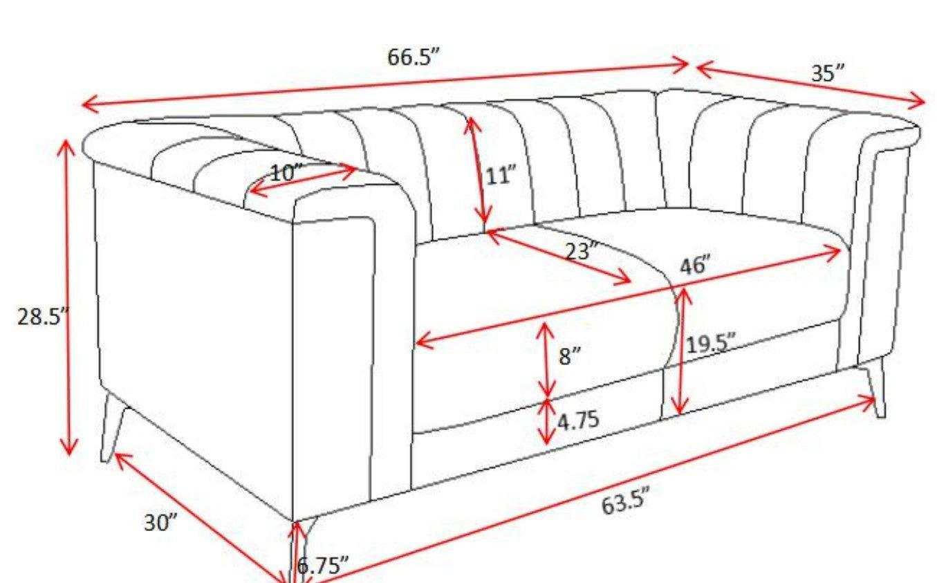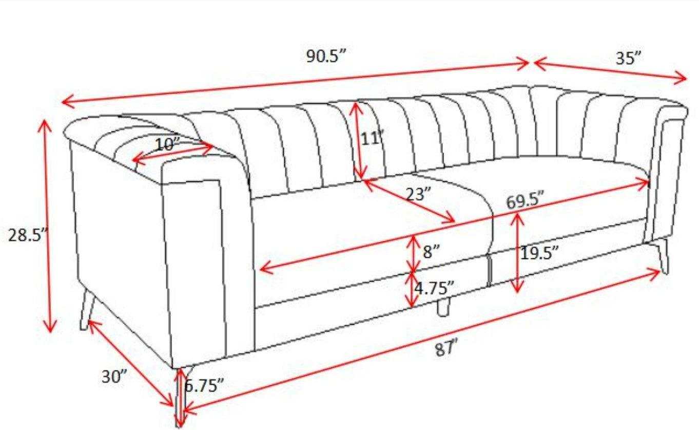 Wrapped in a bold navy blue matte velvet, this sofa and loveseat features shelter back style with vertical, channel tufted interiors. Each piece features a tight waterfall bench seating supported by tapered black metal legs. The arms of each piece roll gently outward, displaying the channel tufting. This set is perfectly suited for a contemporary home that needs a touch of glamour. Its deep, blue tone evokes an elegant nautical vibe, like being on a yacht.