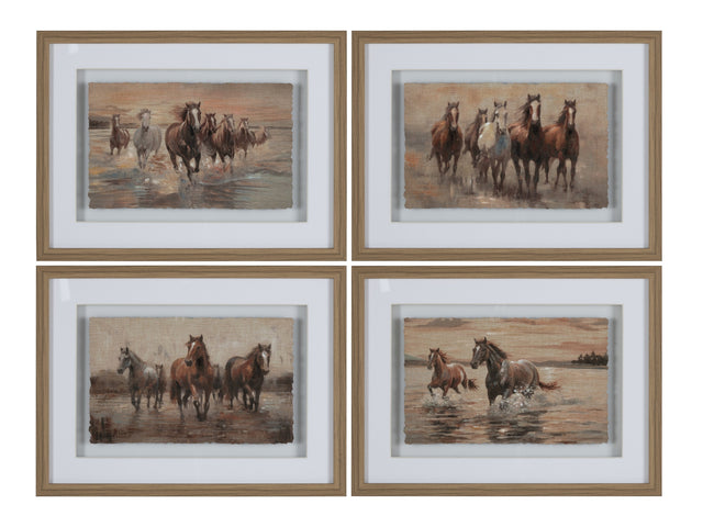 - Four-piece hand-painted canvas set featuring spirited running horses