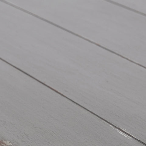 Put your love of European farmhouse styling on display. Finished with an antiqued gray chipped paint effect for an authentic vintage look, this end table is loaded with character. An open display shelf allows for storage and easy access to books, beverages and more.
