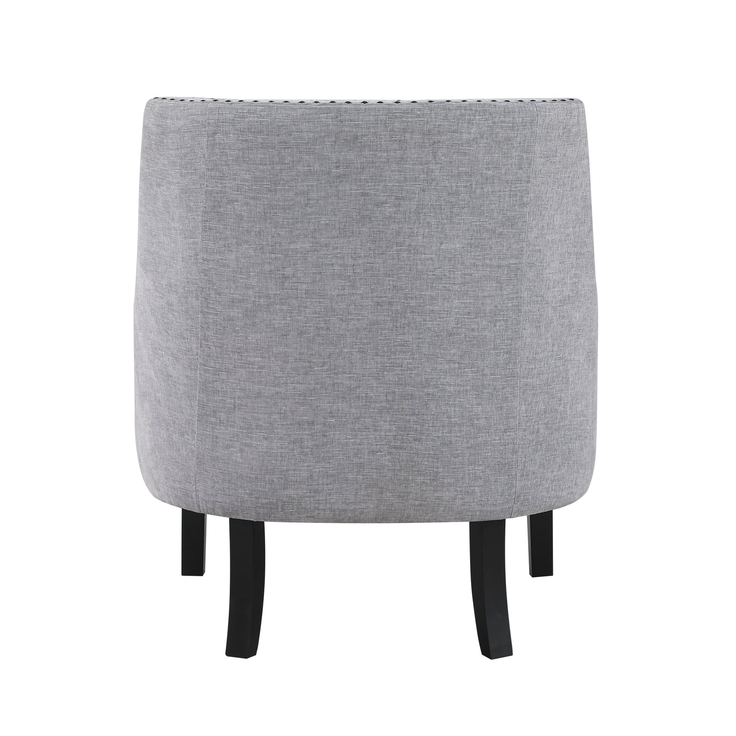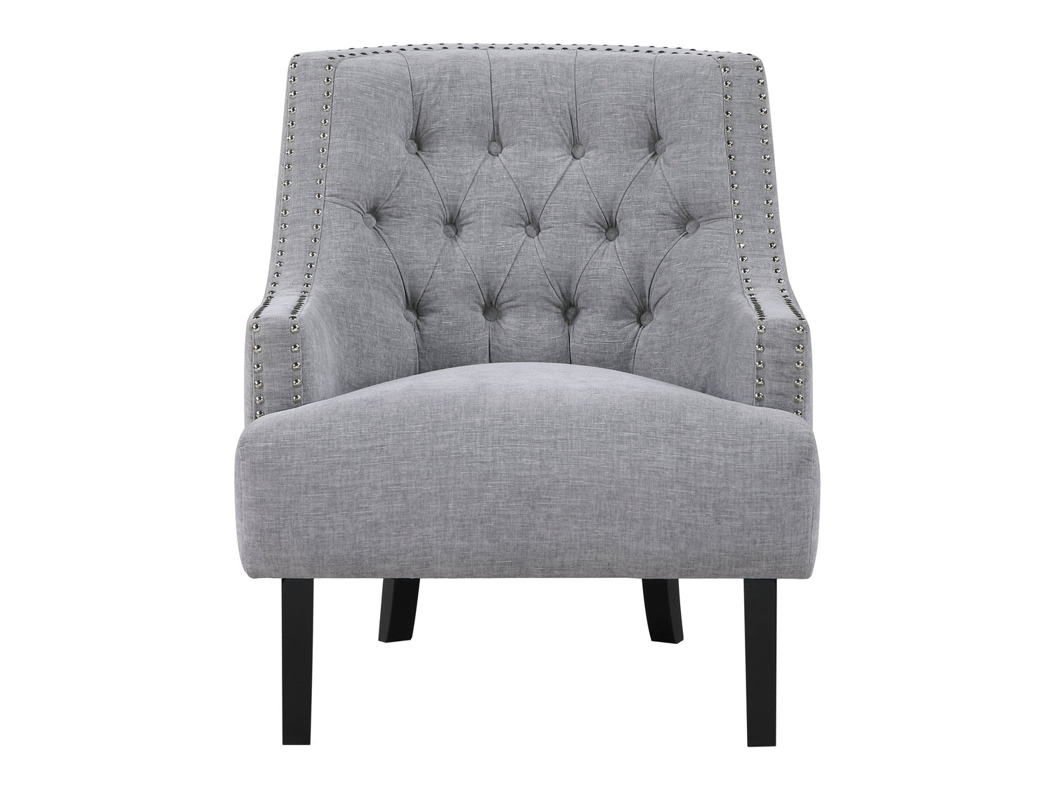 High polish nailhead accents and defines the profile of the Charisma Collection. This modern-traditional gray fabric-covered accent chair provides a stylish, yet functional addition to your home.